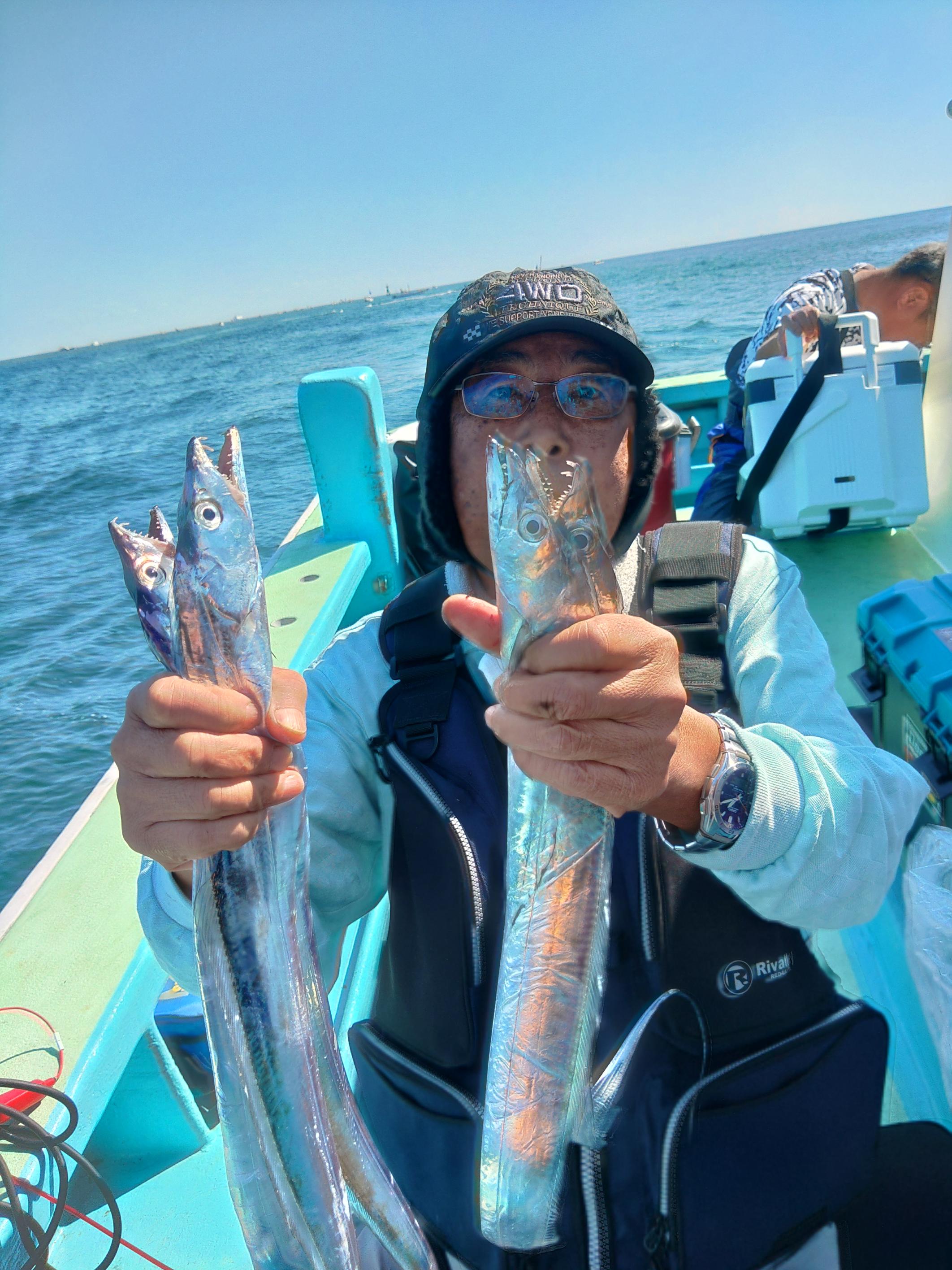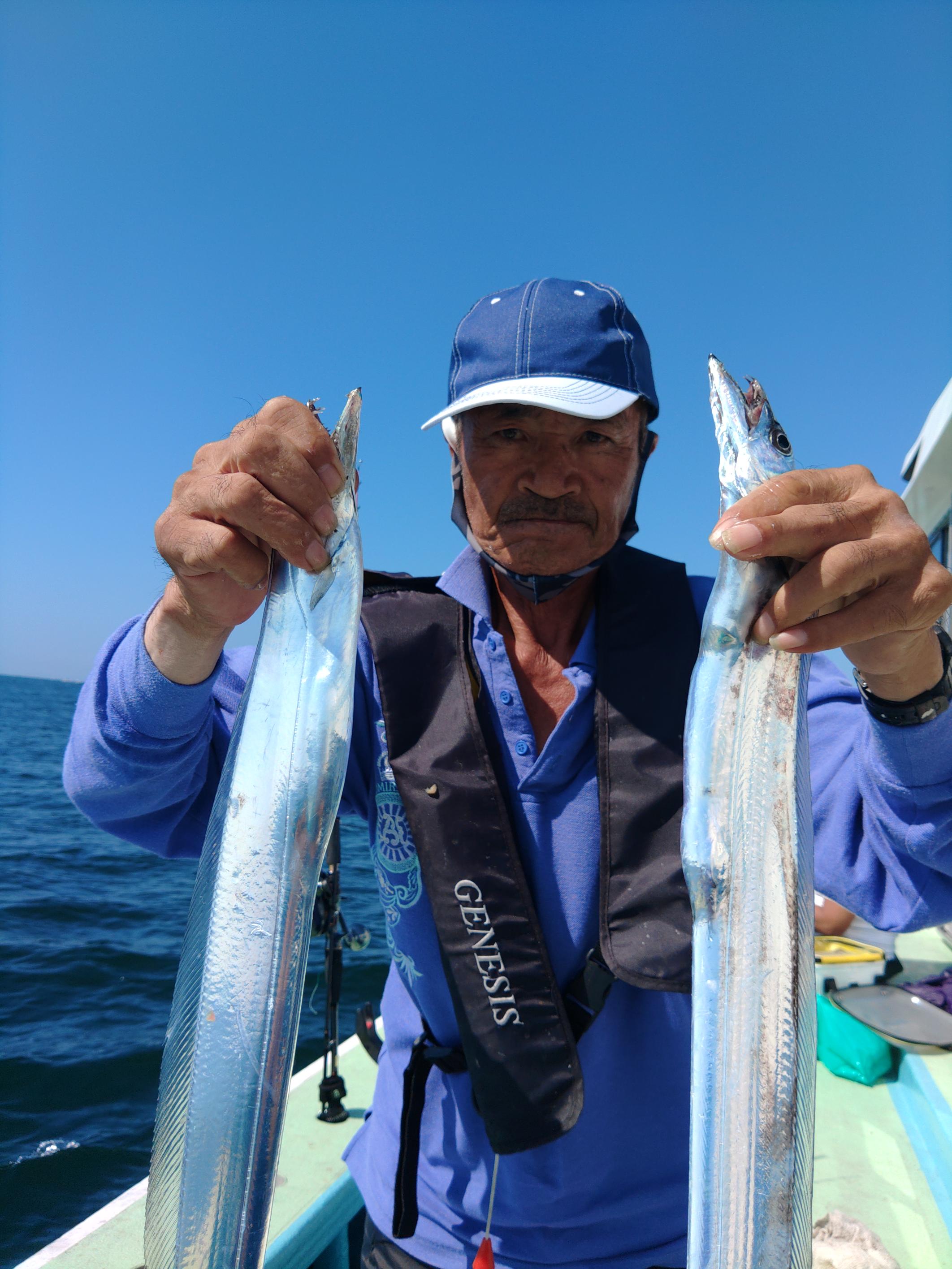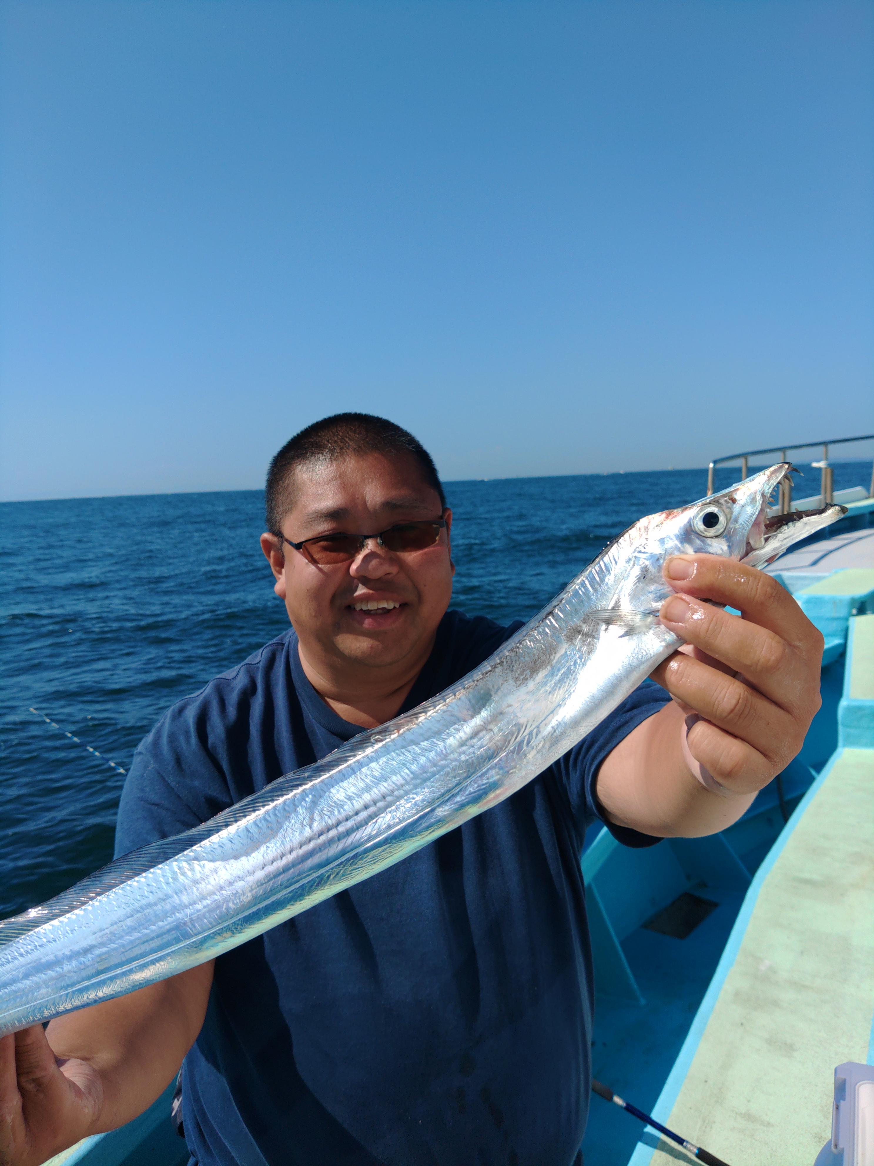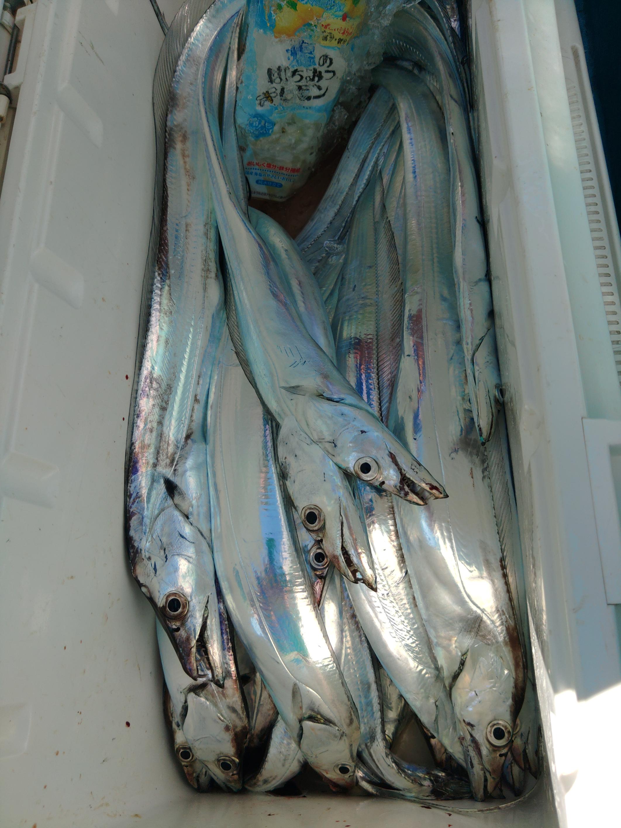 今日もタチウオ釣りに出船しました。天気も良く沢山の方にご乗船いただき満船です。 朝のうちは波と風があわず船がゴロンゴロンで船酔いでダウンされた方も数名 でしたのであまり波のない所で頑張っていただきましたがポツリポツリ 波風おさまりポイント移動するもサバフグの猛攻にあい仕掛けがよく切れました その後はいい所に入れてボチボチ釣れて楽しめました。最近の釣行の中ではちょっと数は控えめですがタチウオ初挑戦の方もボチボチ釣れてました。 ![]() ![]() ![]() ![]() ![]() ![]() ![]() ![]() ![]() ![]() 皆さんすみません 今日1番のサイズは息子でした ![]() 115センチ 680グラムでした ![]() 本人は指5 といいはってました ![]() 後半は凪になりいいサイズも混ざり強い引きで楽しめました お疲れ様でした、ご乗船有り難うございました。また遊びにきてくださいね