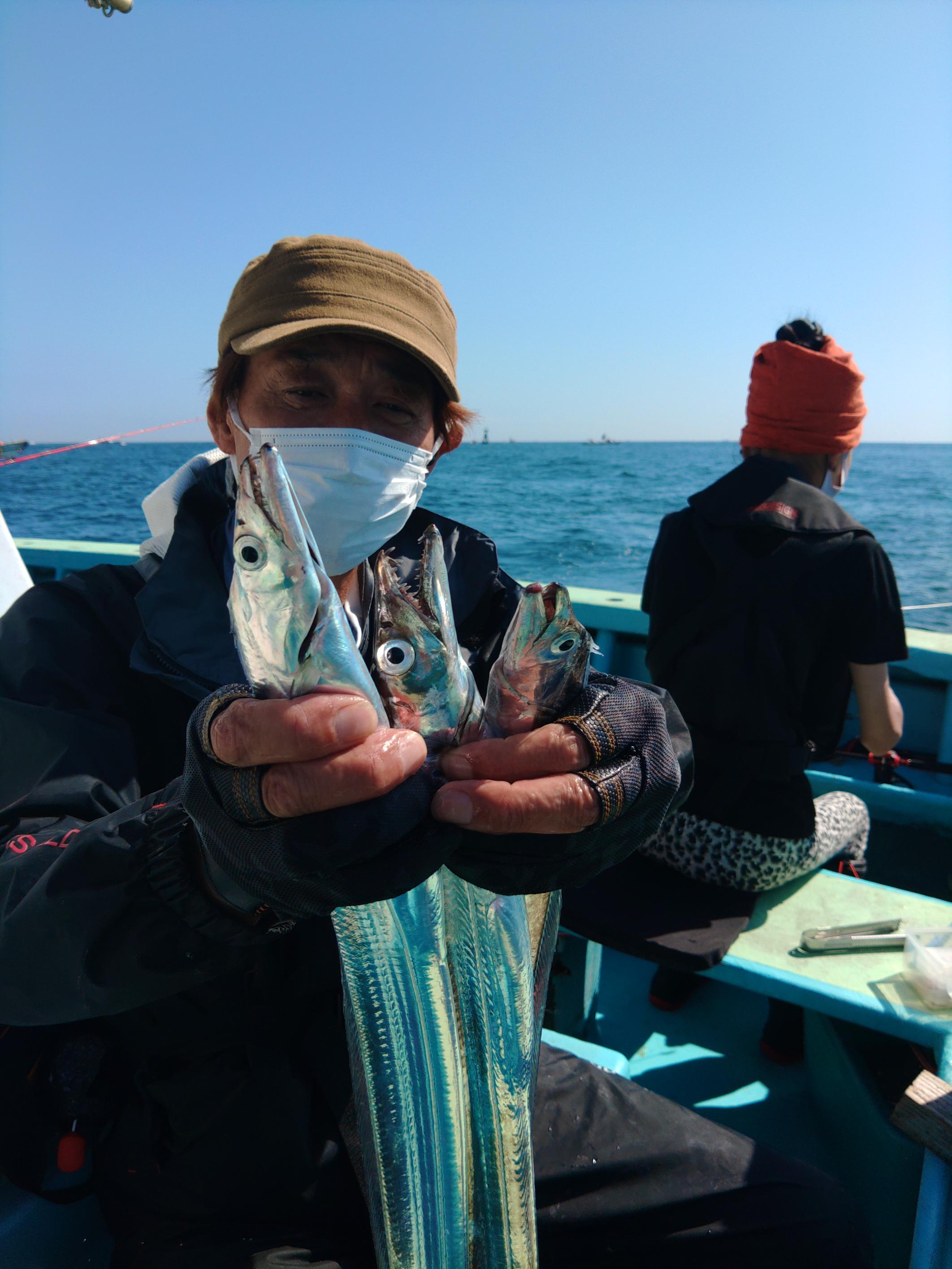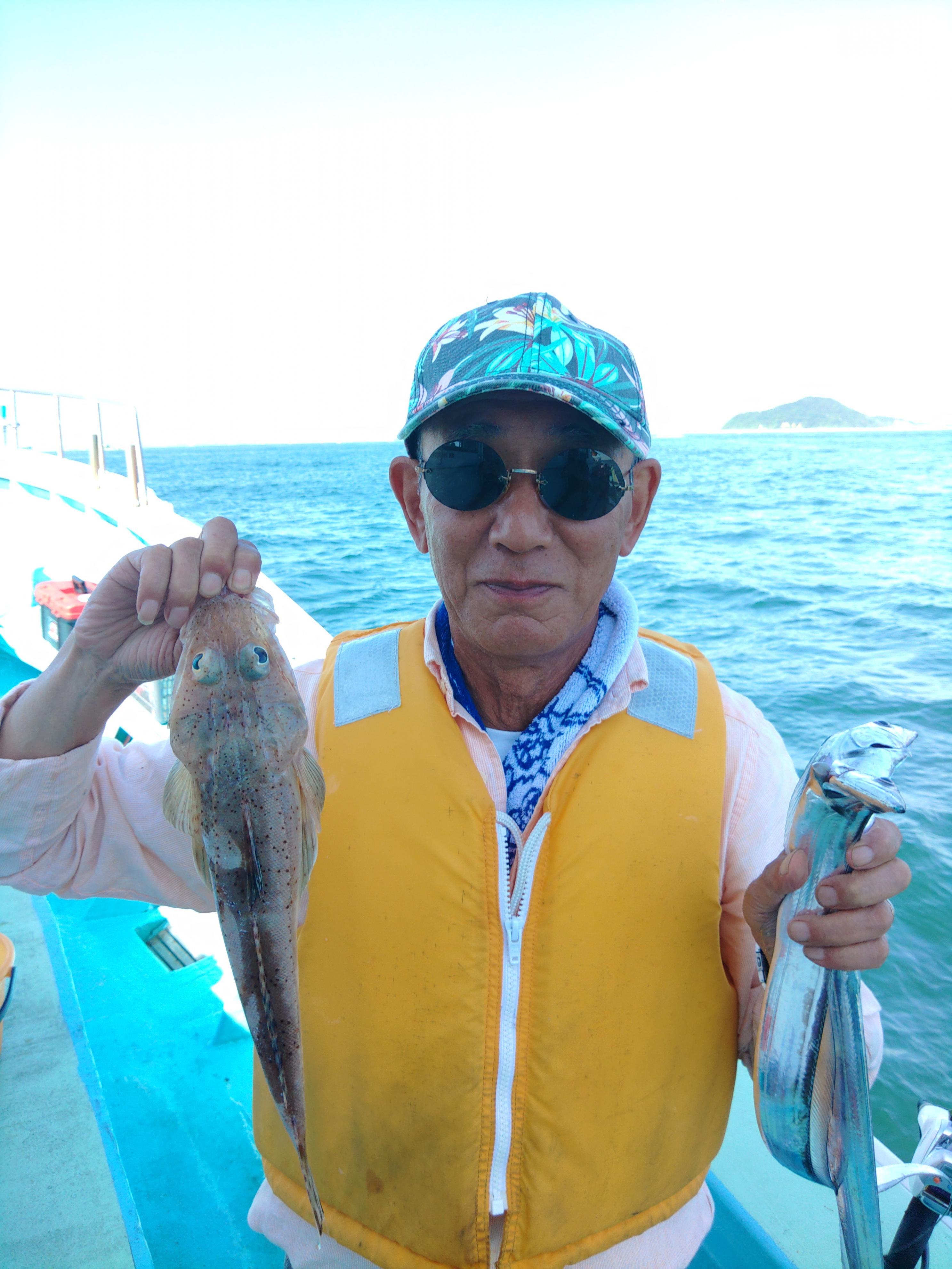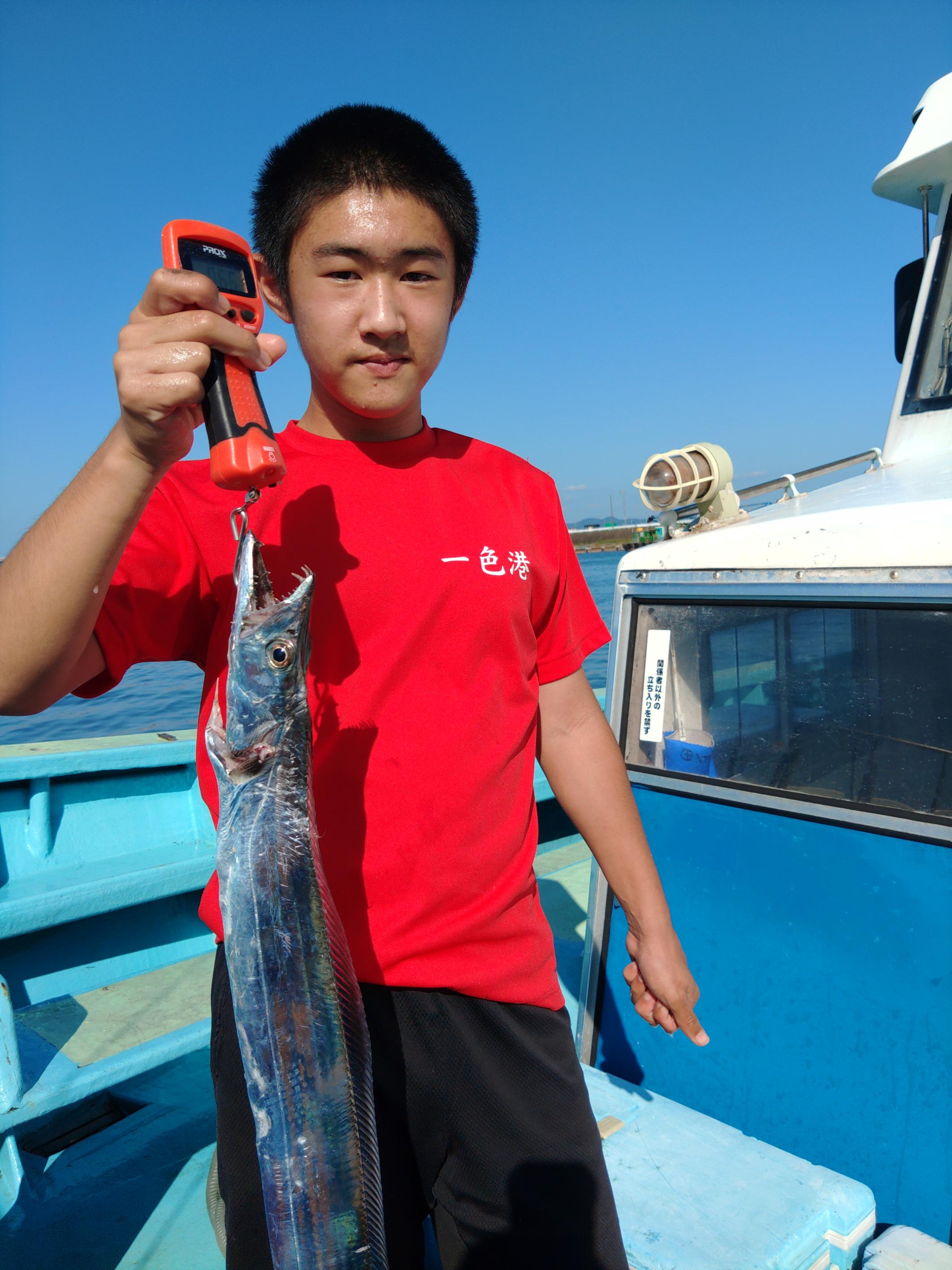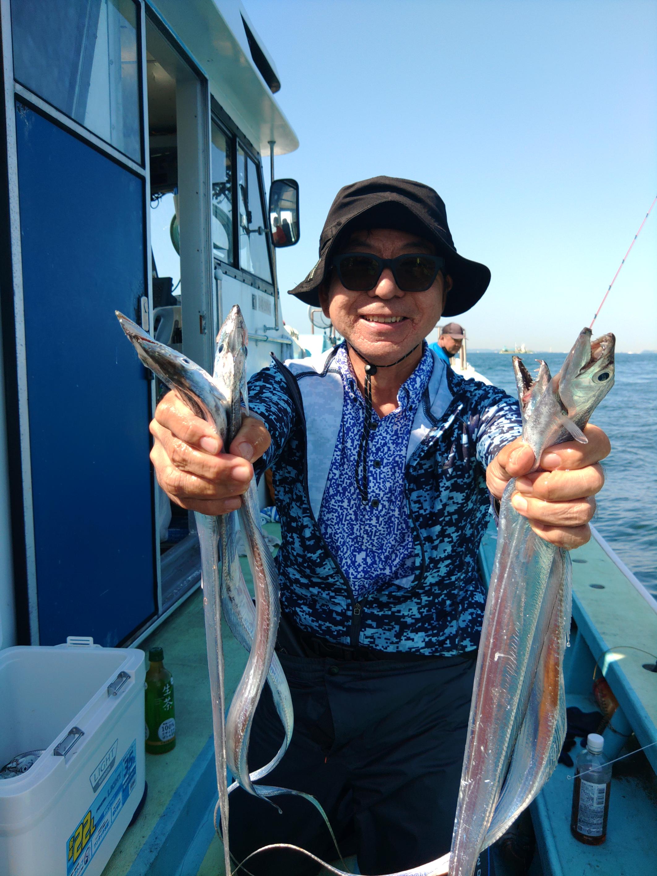 今日もタチウオ釣りに出船しました。天気も良く沢山の方にご乗船いただき満船です。 朝のうちは波と風があわず船がゴロンゴロンで船酔いでダウンされた方も数名 でしたのであまり波のない所で頑張っていただきましたがポツリポツリ 波風おさまりポイント移動するもサバフグの猛攻にあい仕掛けがよく切れました その後はいい所に入れてボチボチ釣れて楽しめました。最近の釣行の中ではちょっと数は控えめですがタチウオ初挑戦の方もボチボチ釣れてました。 ![]() ![]() ![]() ![]() ![]() ![]() ![]() ![]() ![]() ![]() 皆さんすみません 今日1番のサイズは息子でした ![]() 115センチ 680グラムでした ![]() 本人は指5 といいはってました ![]() 後半は凪になりいいサイズも混ざり強い引きで楽しめました お疲れ様でした、ご乗船有り難うございました。また遊びにきてくださいね