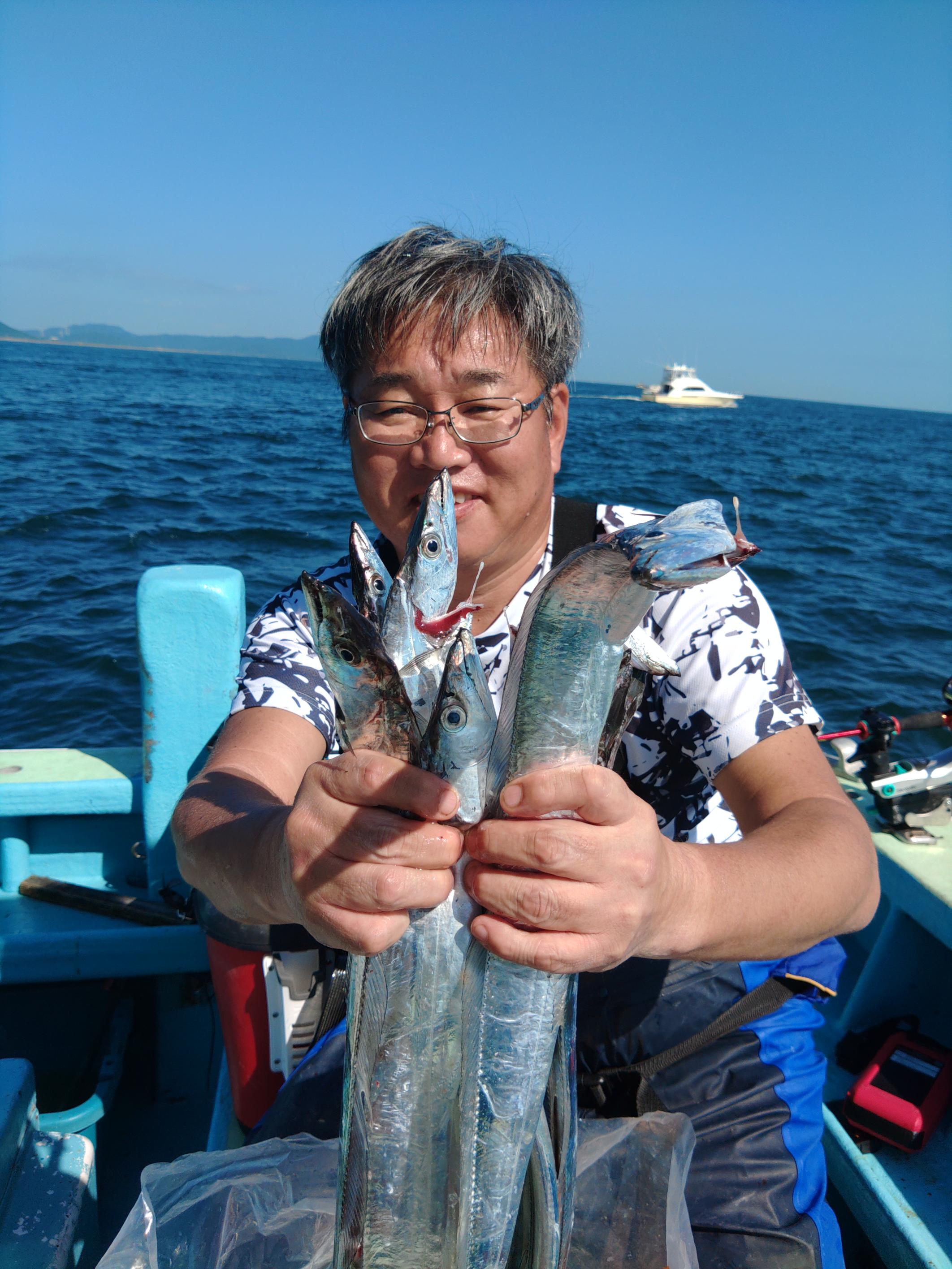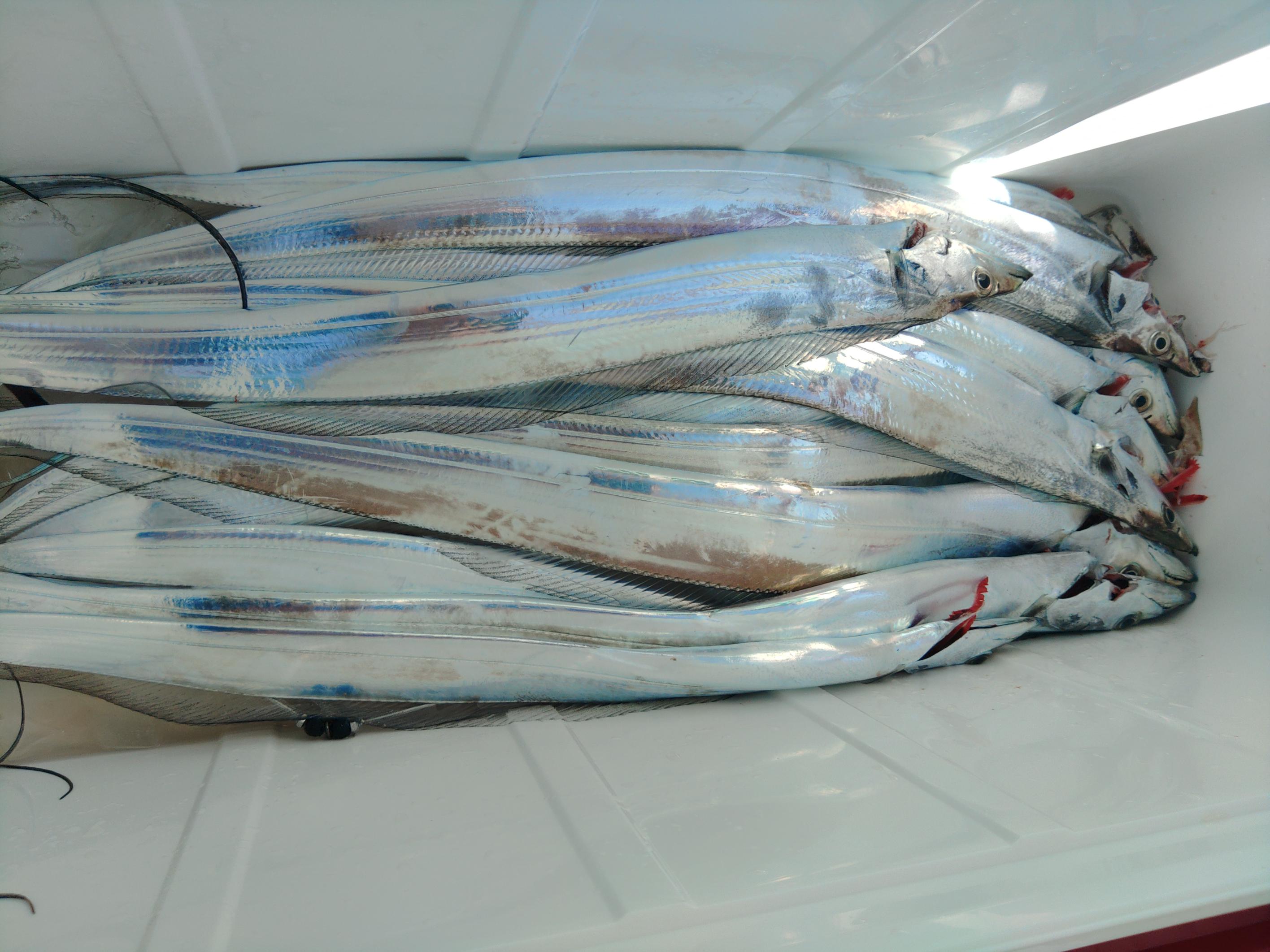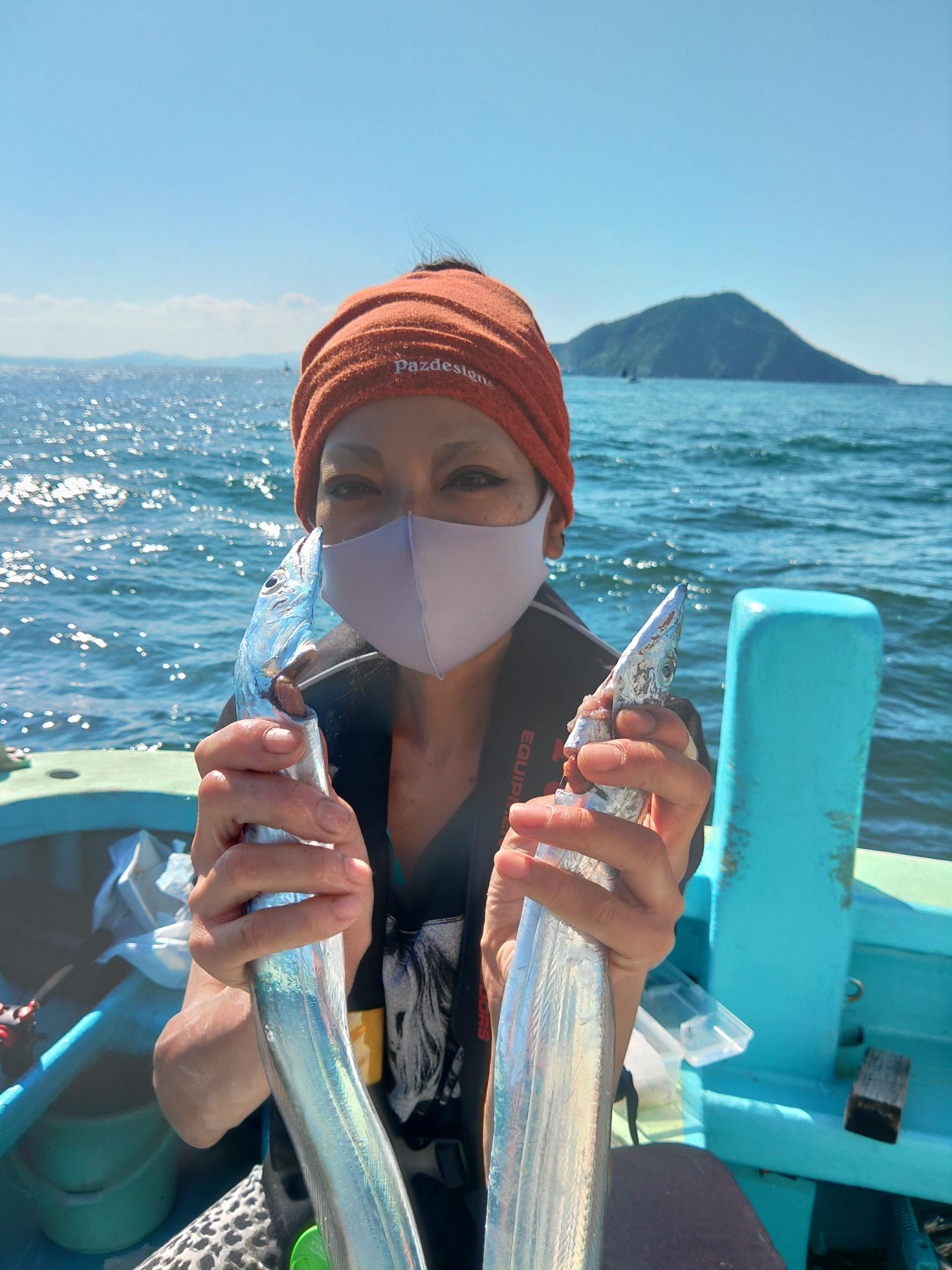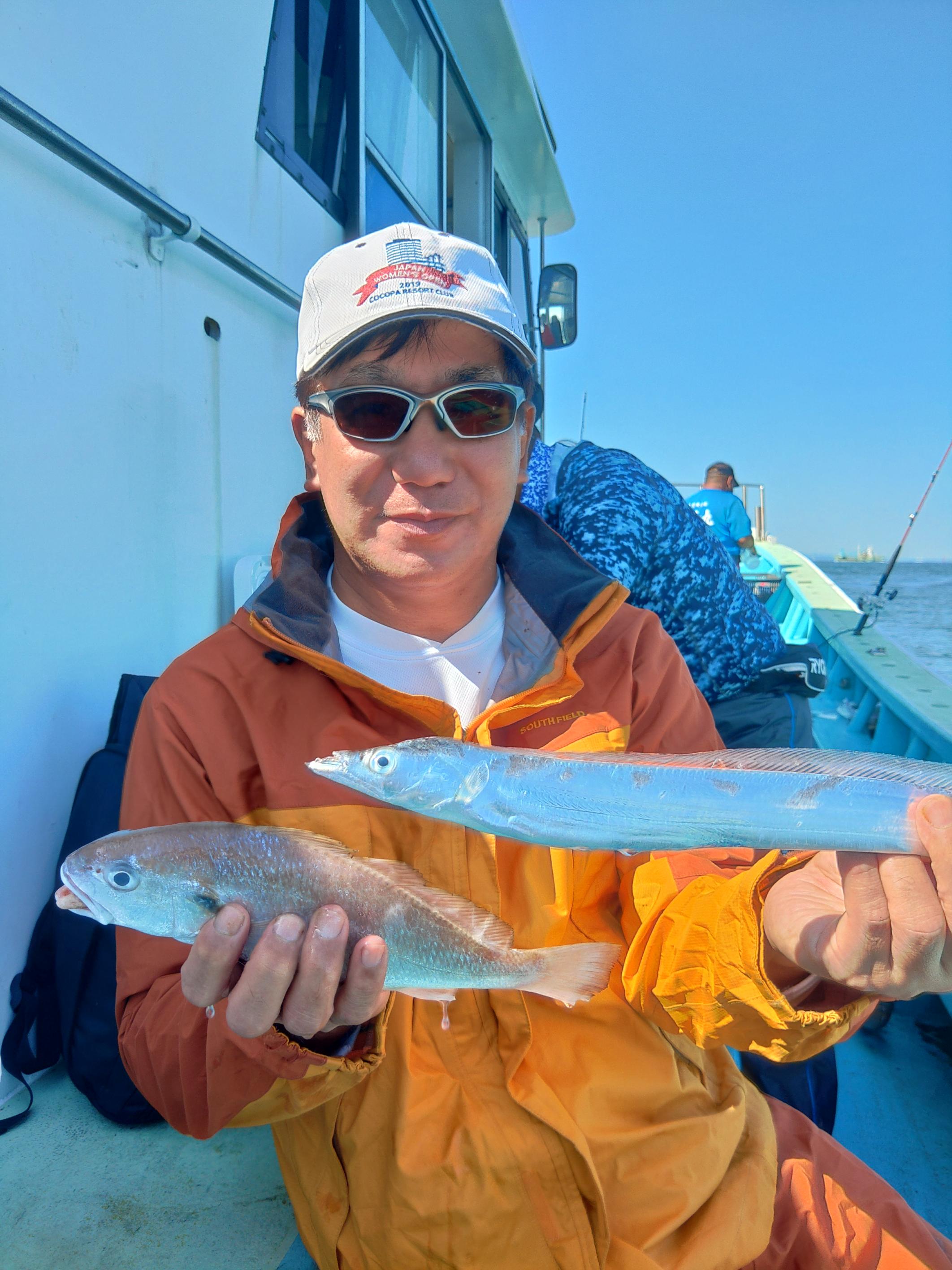 今日もタチウオ釣りに出船しました。天気も良く沢山の方にご乗船いただき満船です。 朝のうちは波と風があわず船がゴロンゴロンで船酔いでダウンされた方も数名 でしたのであまり波のない所で頑張っていただきましたがポツリポツリ 波風おさまりポイント移動するもサバフグの猛攻にあい仕掛けがよく切れました その後はいい所に入れてボチボチ釣れて楽しめました。最近の釣行の中ではちょっと数は控えめですがタチウオ初挑戦の方もボチボチ釣れてました。 ![]() ![]() ![]() ![]() ![]() ![]() ![]() ![]() ![]() ![]() 皆さんすみません 今日1番のサイズは息子でした ![]() 115センチ 680グラムでした ![]() 本人は指5 といいはってました ![]() 後半は凪になりいいサイズも混ざり強い引きで楽しめました お疲れ様でした、ご乗船有り難うございました。また遊びにきてくださいね