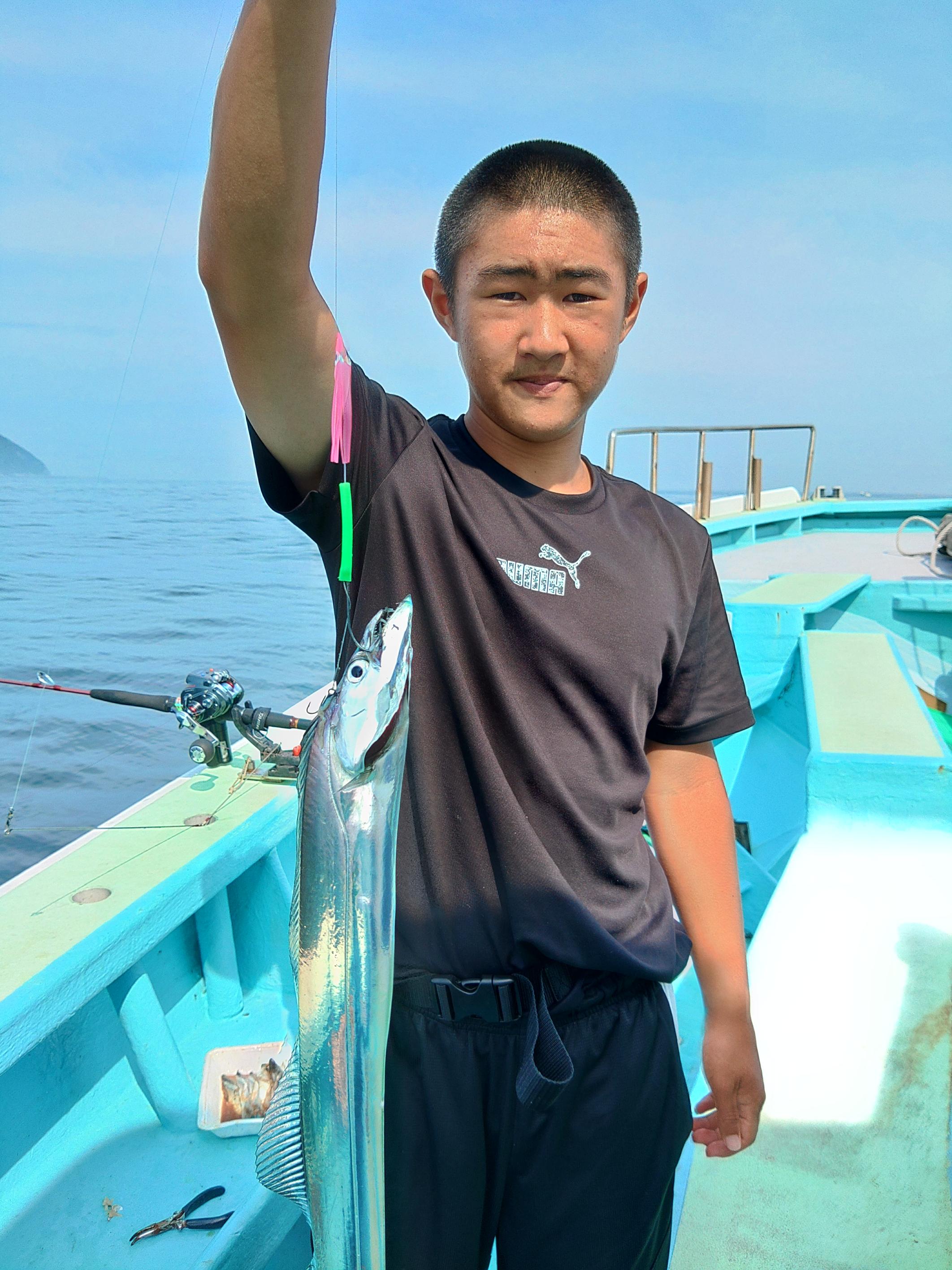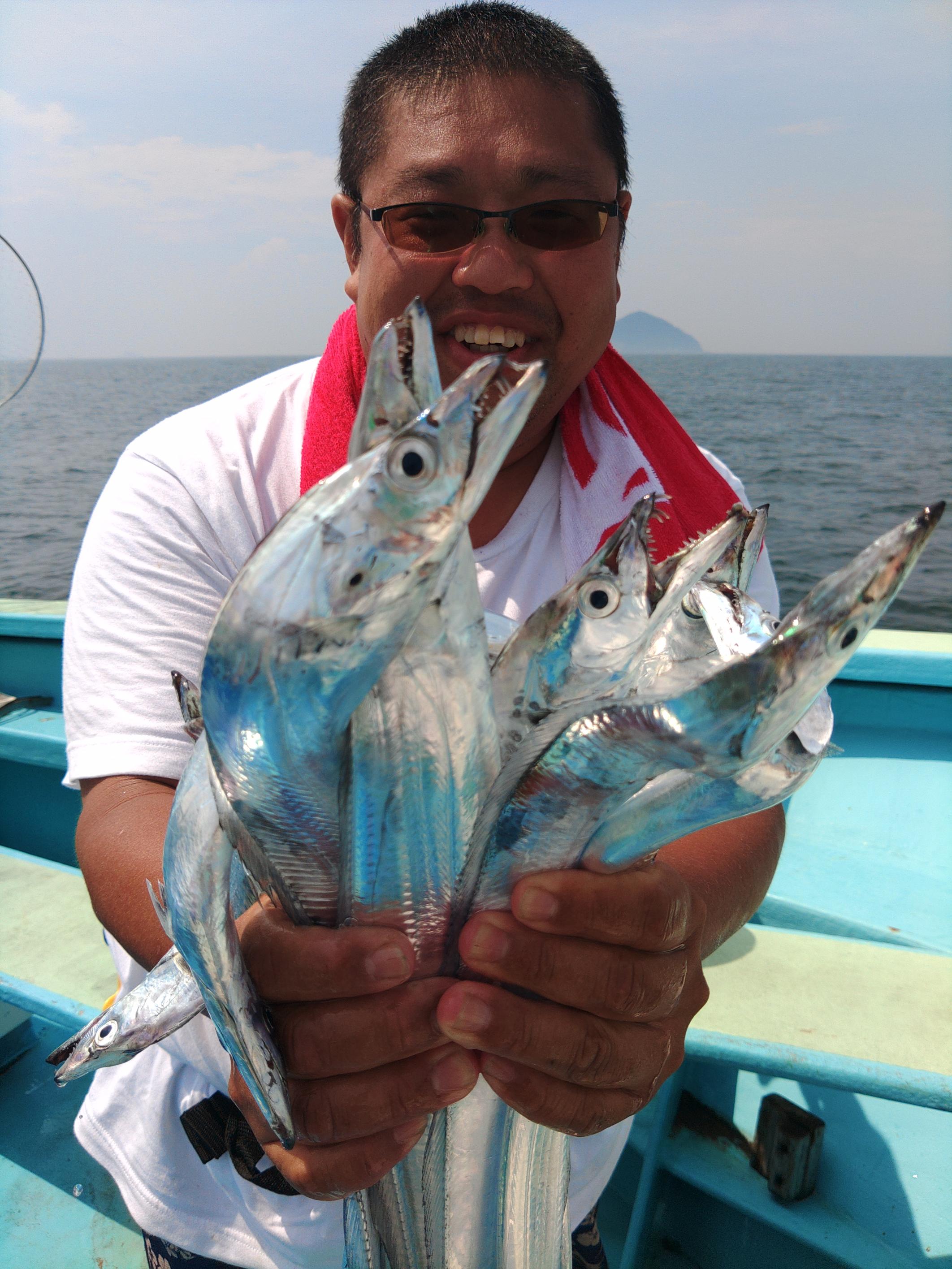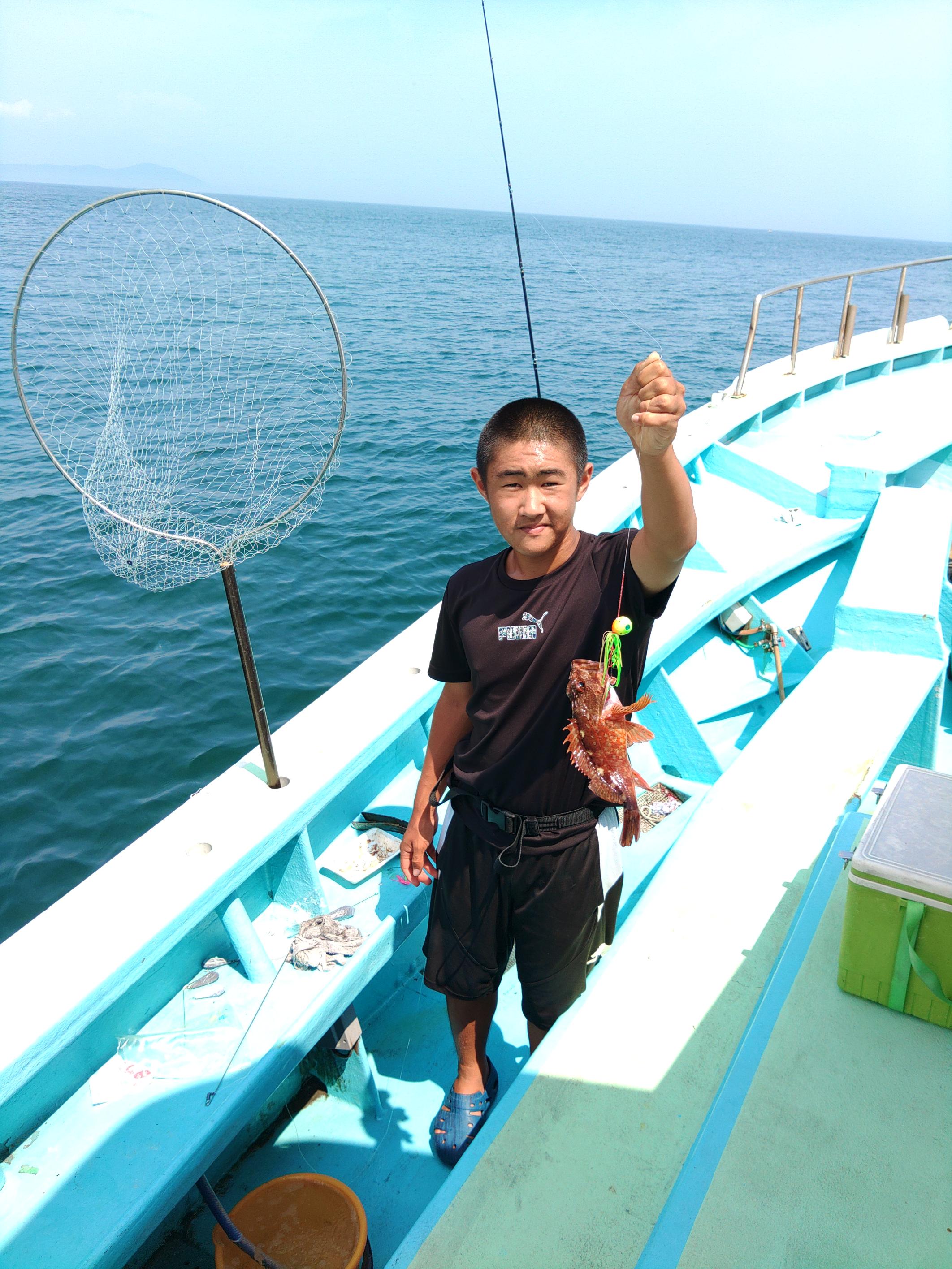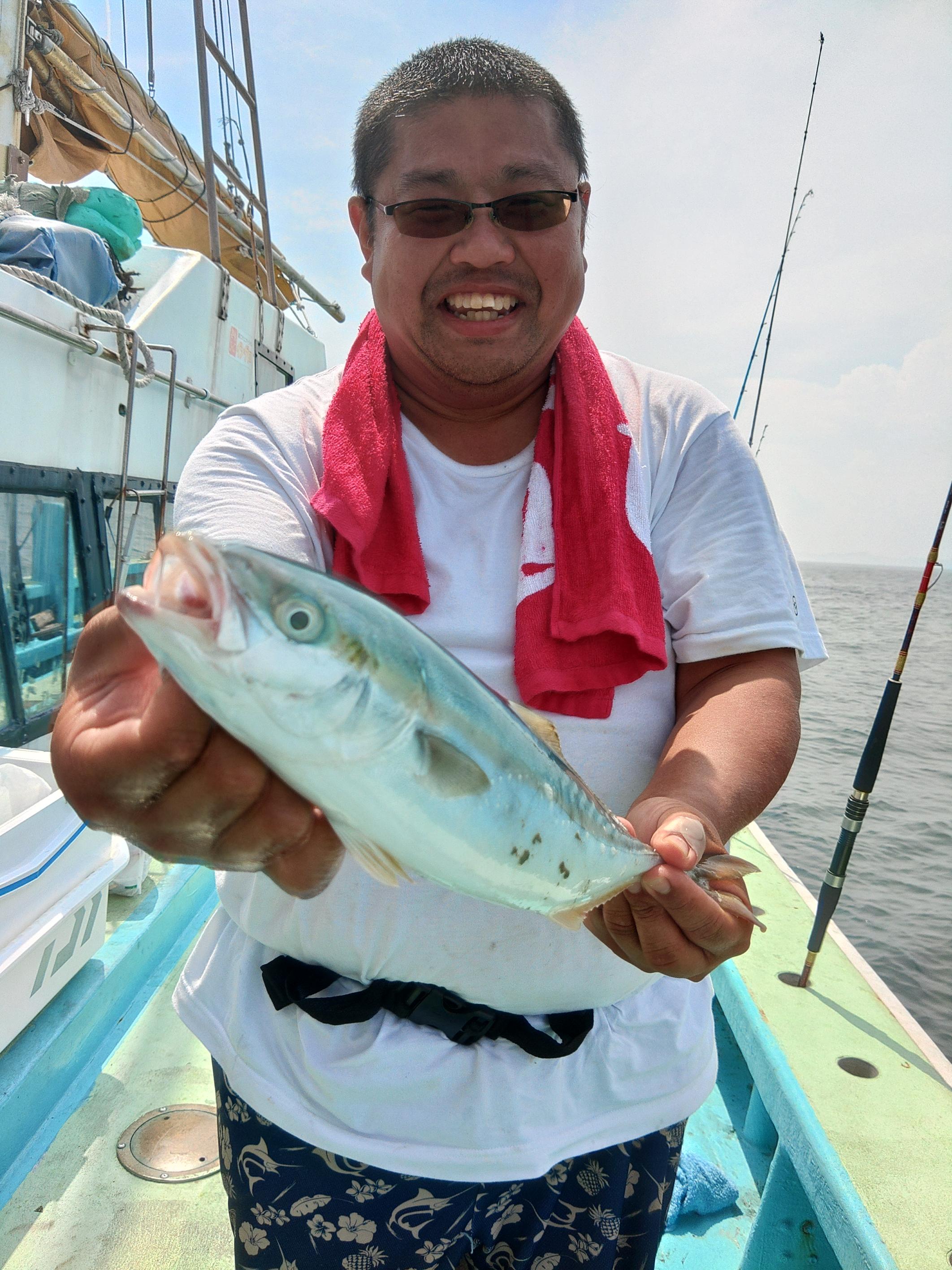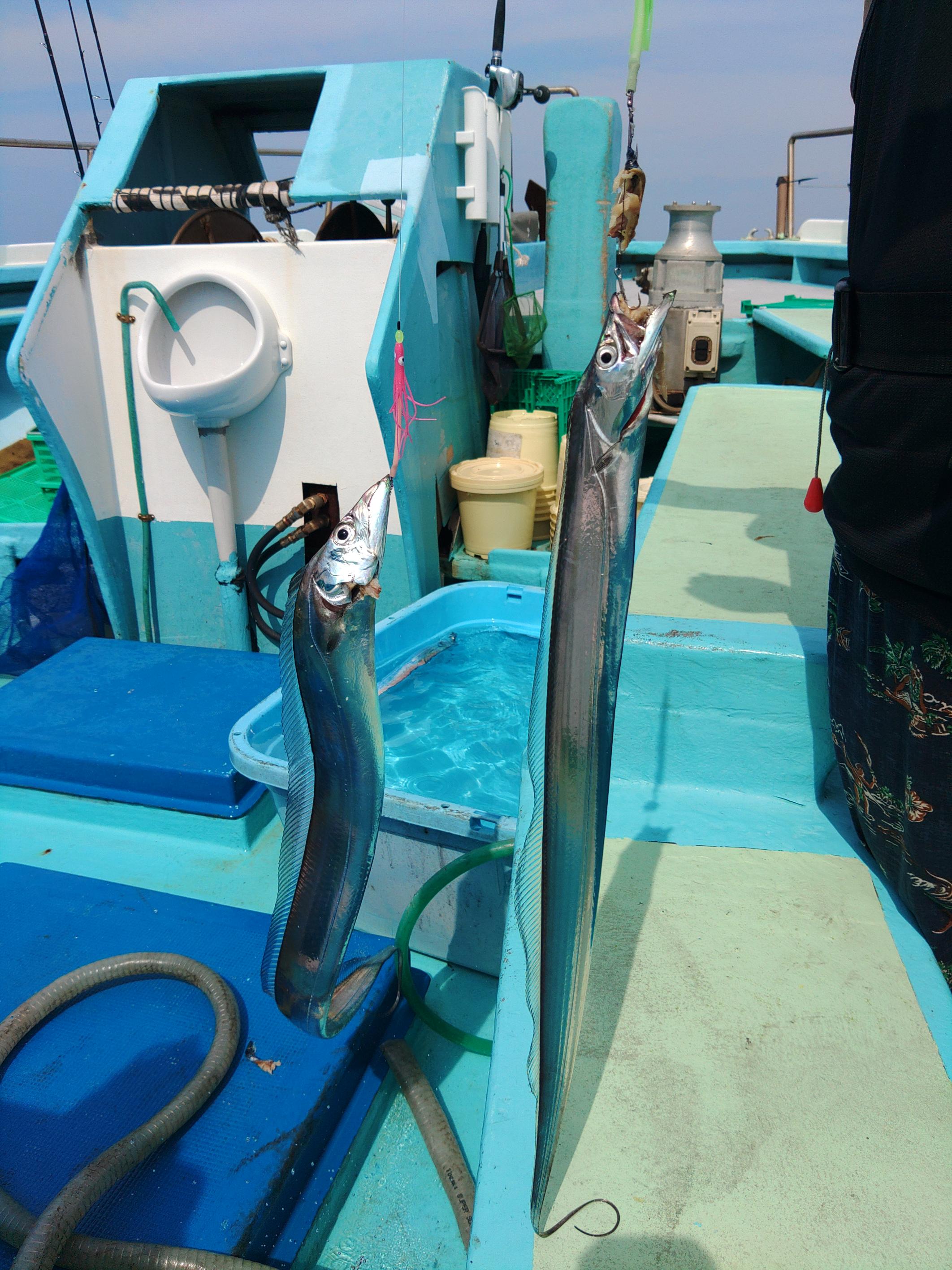 今日は予約なく休船でした。 夏休み何処にも遊びに連れて行ってなかったのでどうする?と息子に聞くとタチウオか鯛が釣りたい❗と結局魚釣り 慎くんと山田君も行く❗ということでタチウオ調査 1投目から指3サイズがぼちぼちと釣れて楽しませてくれます ![]() 山田君もちよいといいサイズも釣れて喜んでいると ![]() ![]() 息子に出ました デカタチウオ❗ ![]() ![]() これが最大サイズでした 慎くんは レギュラーサイズのみ ![]() 潮も速くなりアタリも無くなったので鯛へ このサイズぼかり ![]() よくひくと思えばシオやワラサ ![]() 慎くんはハマチ ![]() 山田君は根魚ばっかり ![]() カサゴもデカイ ![]() もう少し大きい鯛が釣りたかった様ですが色々釣れて楽しかった様です 明日はキス釣りで予約ありますがまだ人数足りません、よかったら遊びに来てください そろそろタチウオ釣りでも出船します。