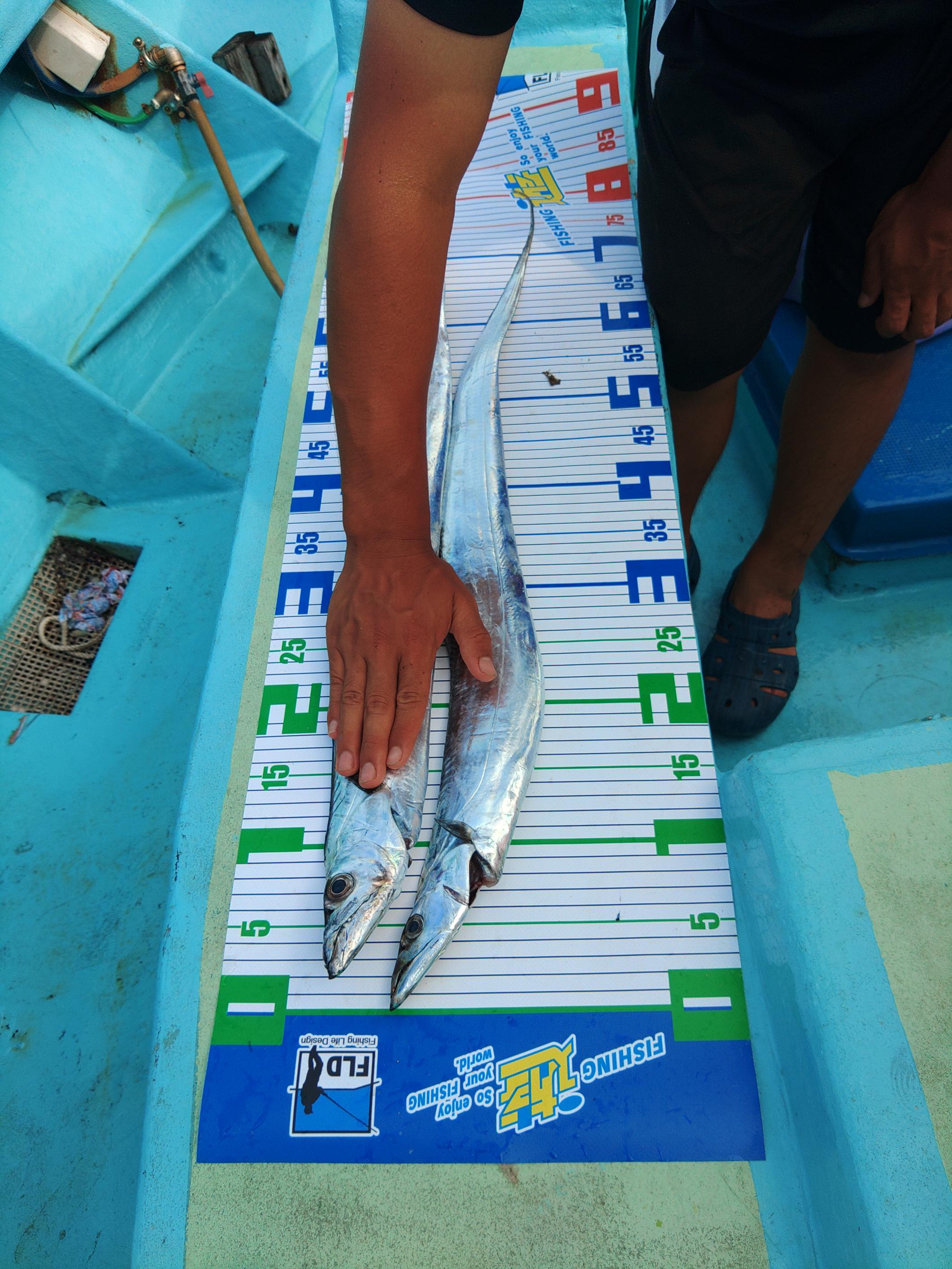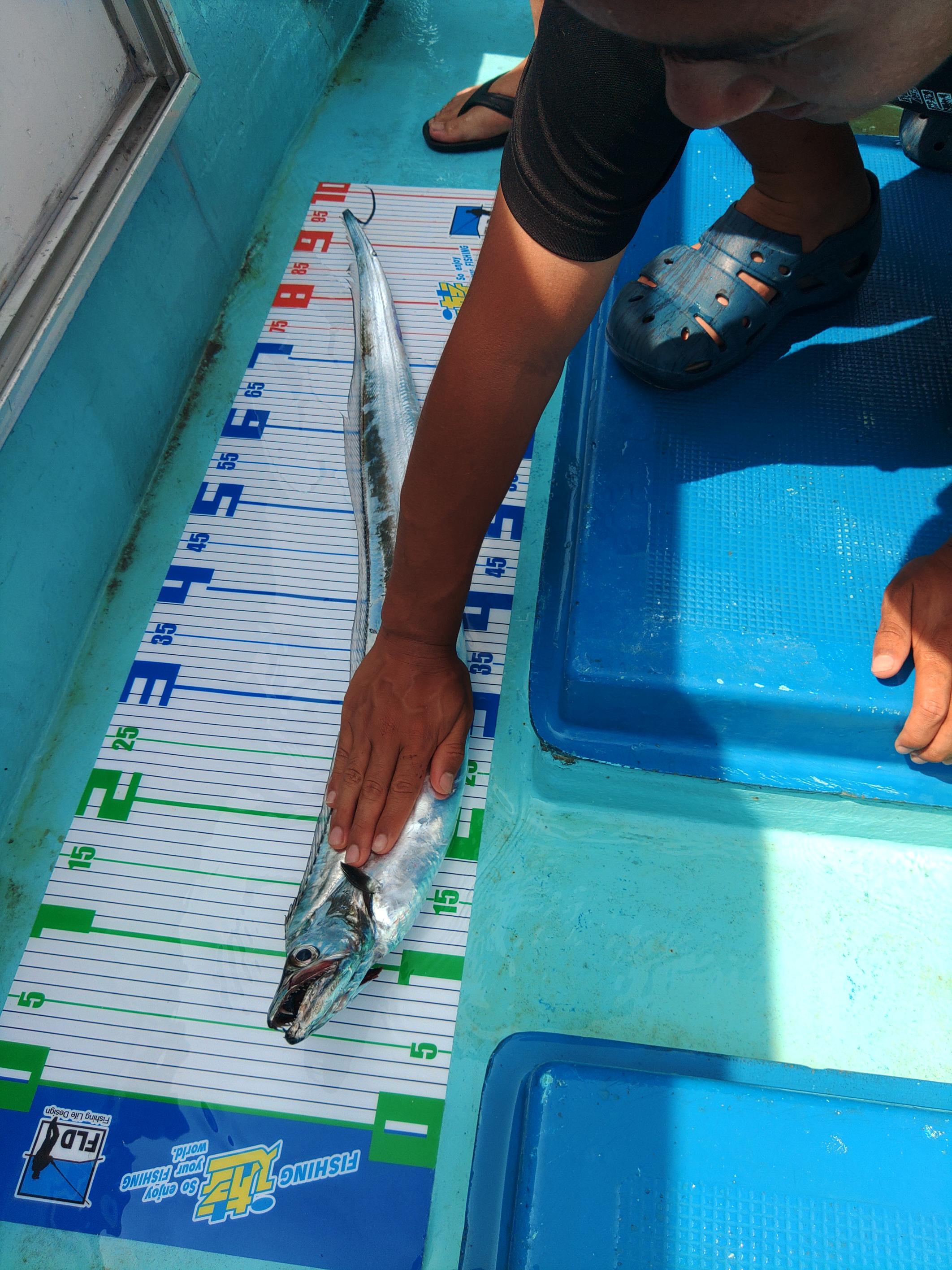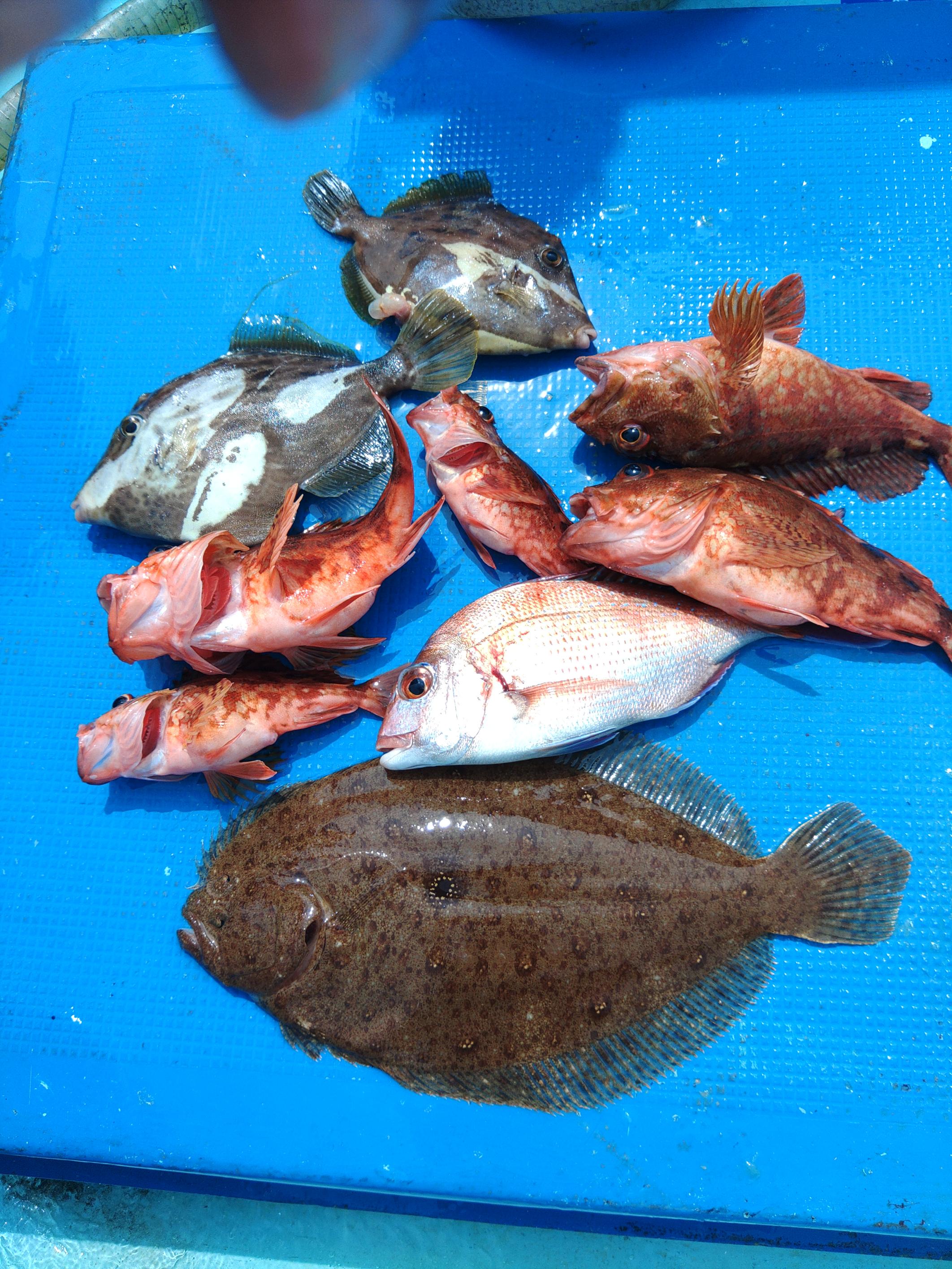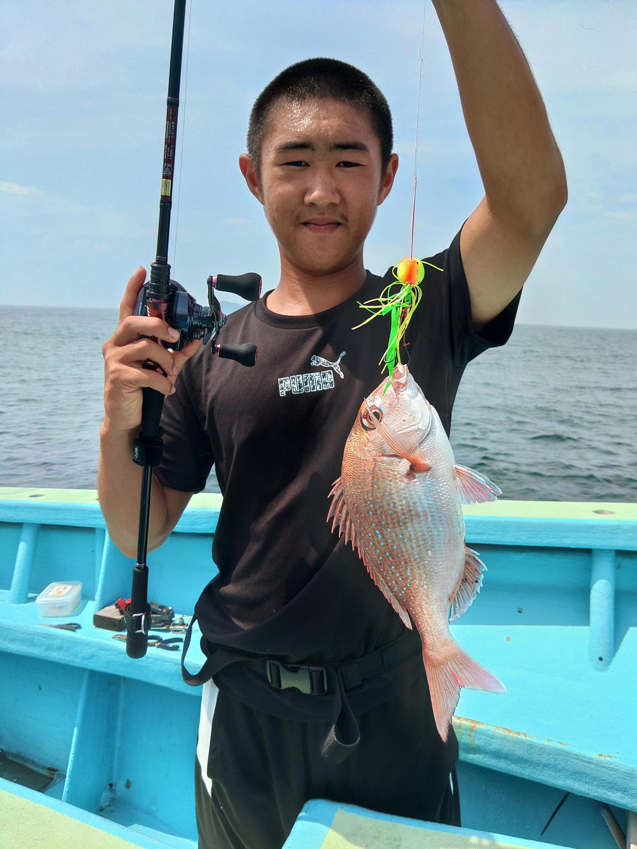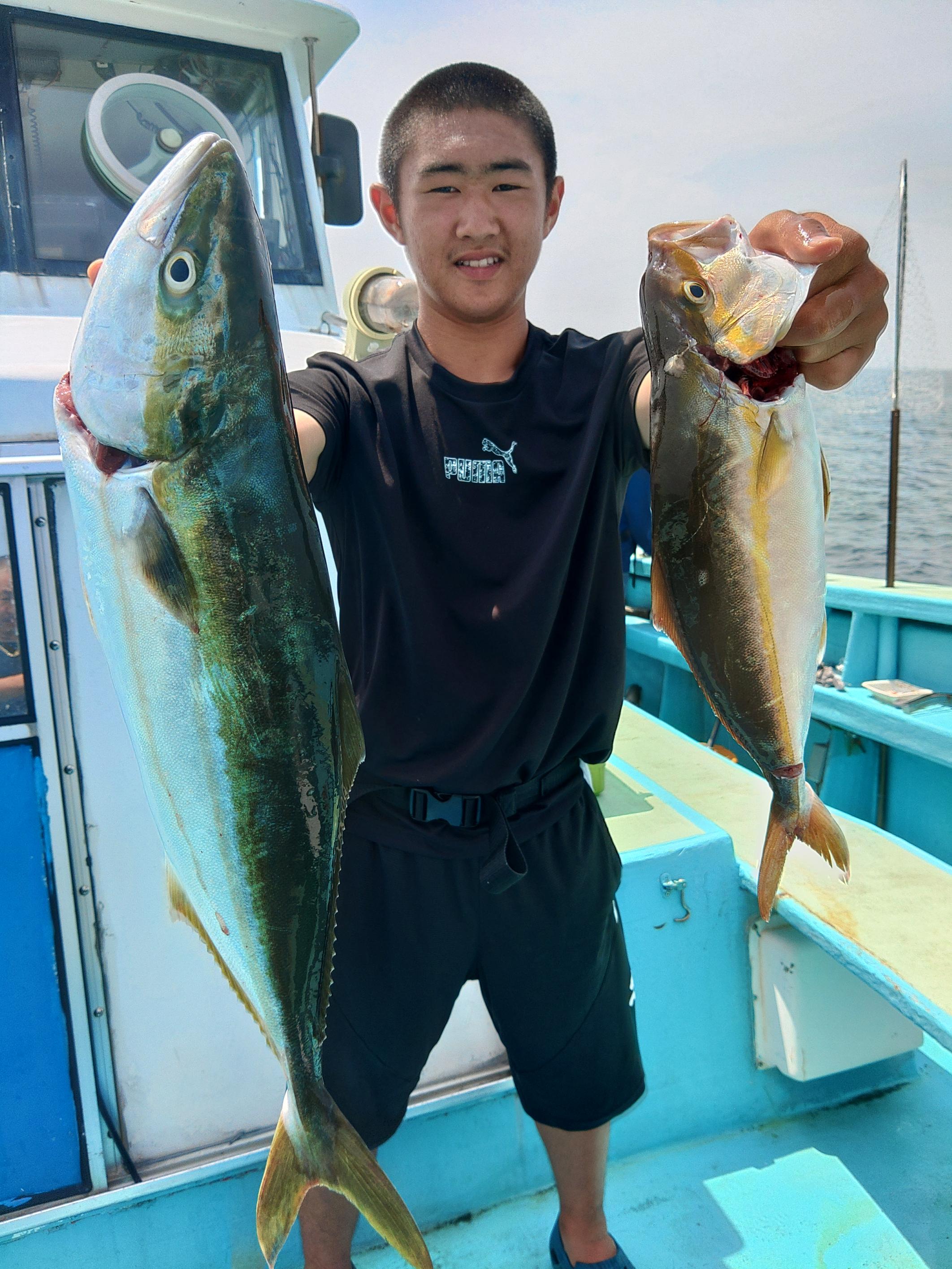 今日は予約なく休船でした。 夏休み何処にも遊びに連れて行ってなかったのでどうする?と息子に聞くとタチウオか鯛が釣りたい❗と結局魚釣り 慎くんと山田君も行く❗ということでタチウオ調査 1投目から指3サイズがぼちぼちと釣れて楽しませてくれます ![]() 山田君もちよいといいサイズも釣れて喜んでいると ![]() ![]() 息子に出ました デカタチウオ❗ ![]() ![]() これが最大サイズでした 慎くんは レギュラーサイズのみ ![]() 潮も速くなりアタリも無くなったので鯛へ このサイズぼかり ![]() よくひくと思えばシオやワラサ ![]() 慎くんはハマチ ![]() 山田君は根魚ばっかり ![]() カサゴもデカイ ![]() もう少し大きい鯛が釣りたかった様ですが色々釣れて楽しかった様です 明日はキス釣りで予約ありますがまだ人数足りません、よかったら遊びに来てください そろそろタチウオ釣りでも出船します。