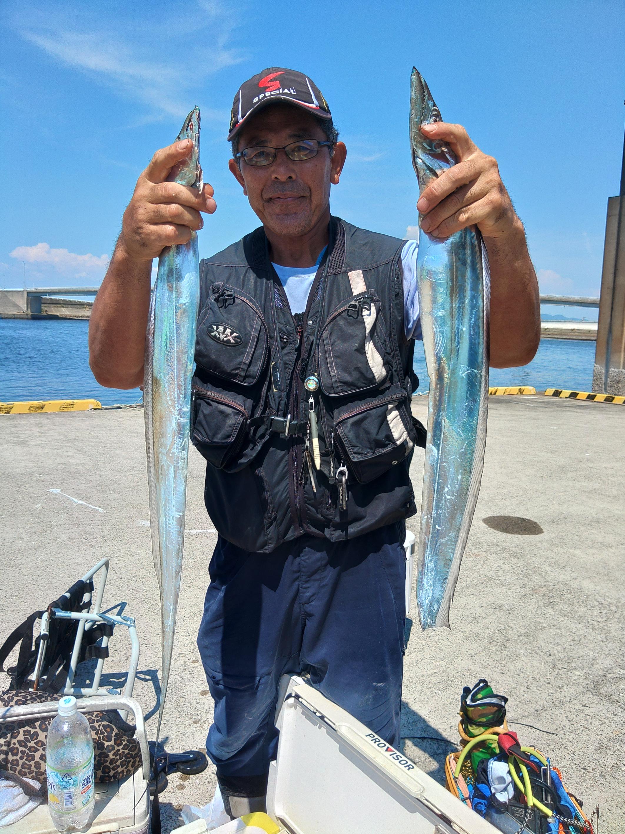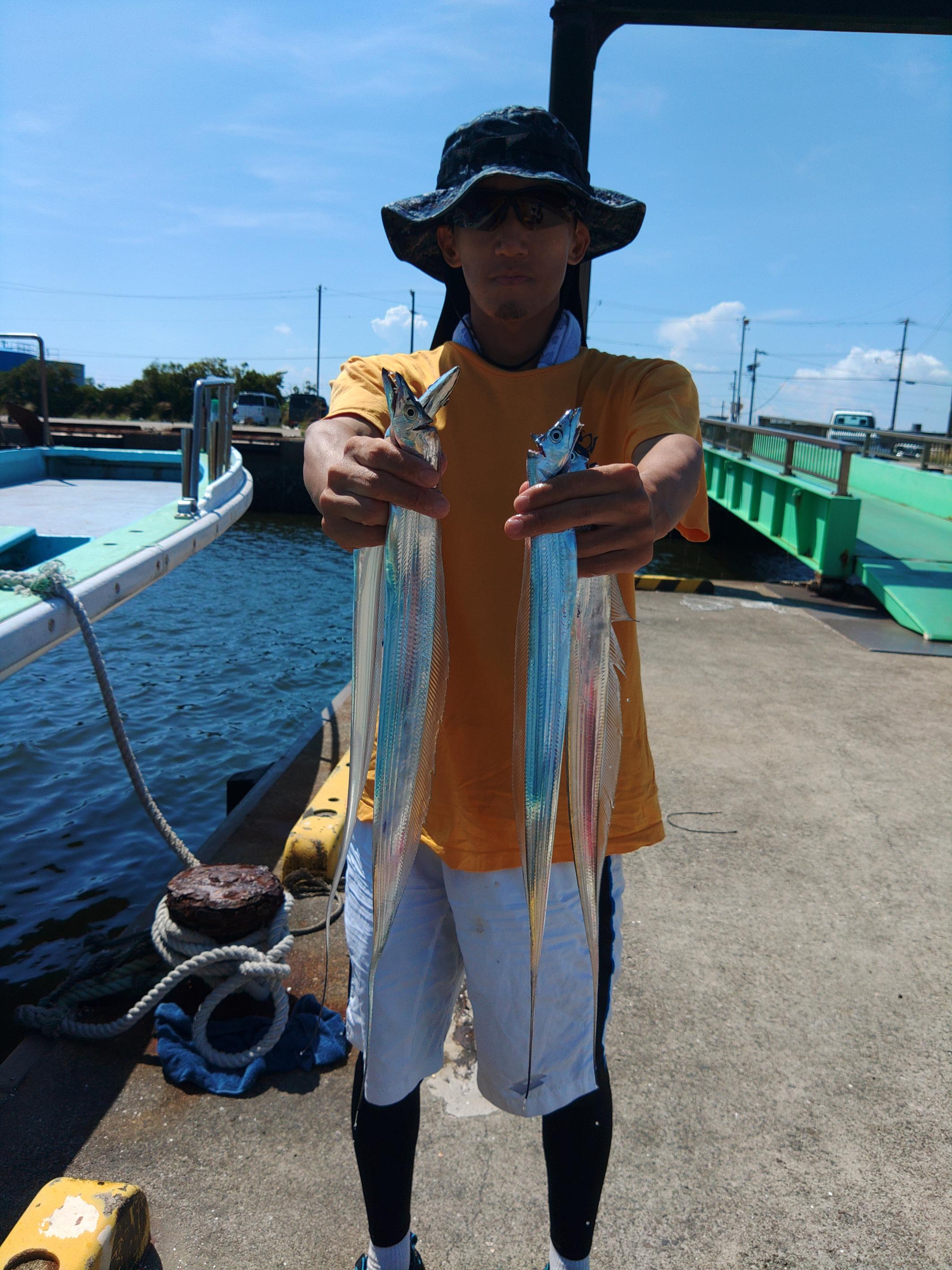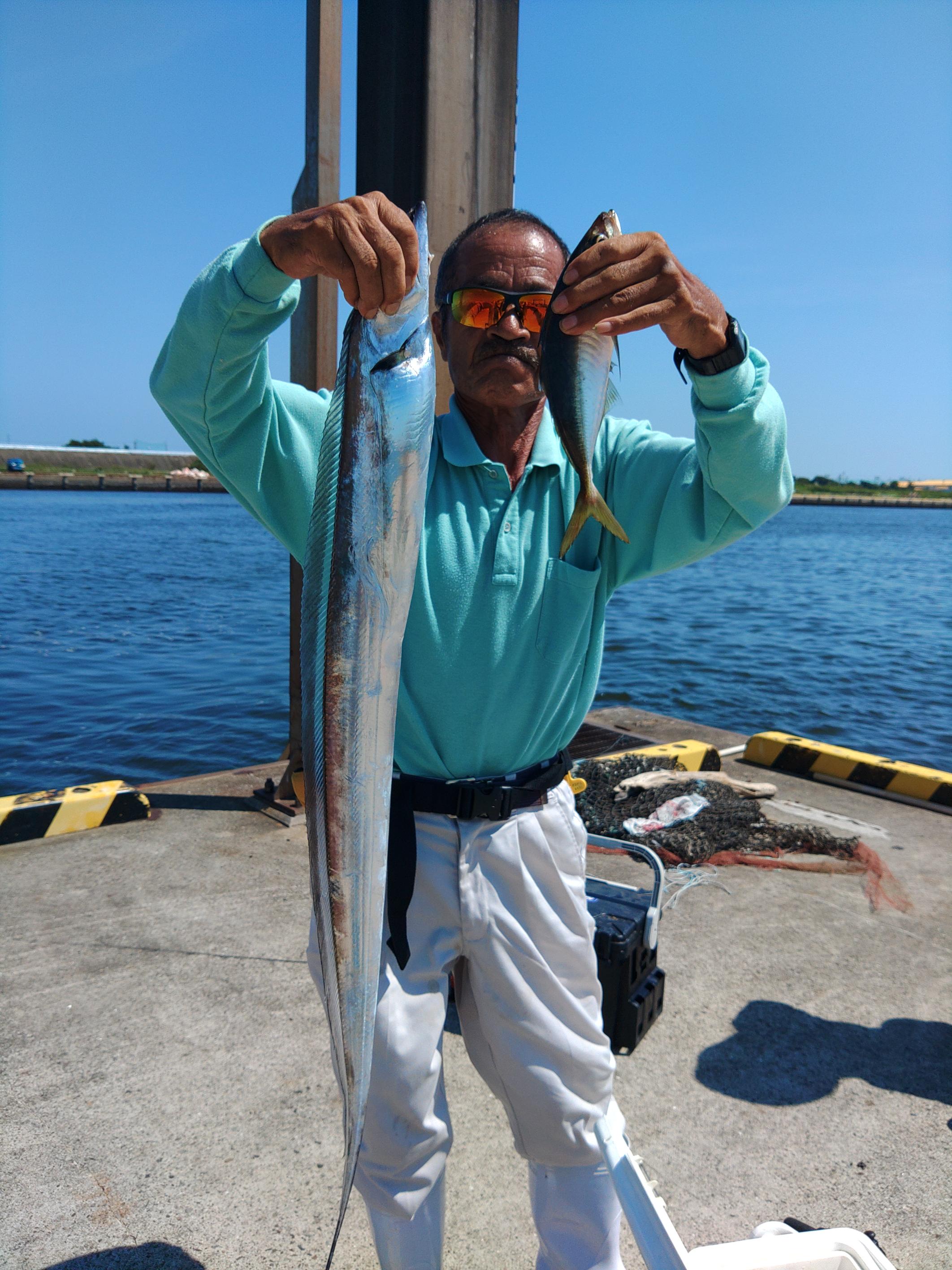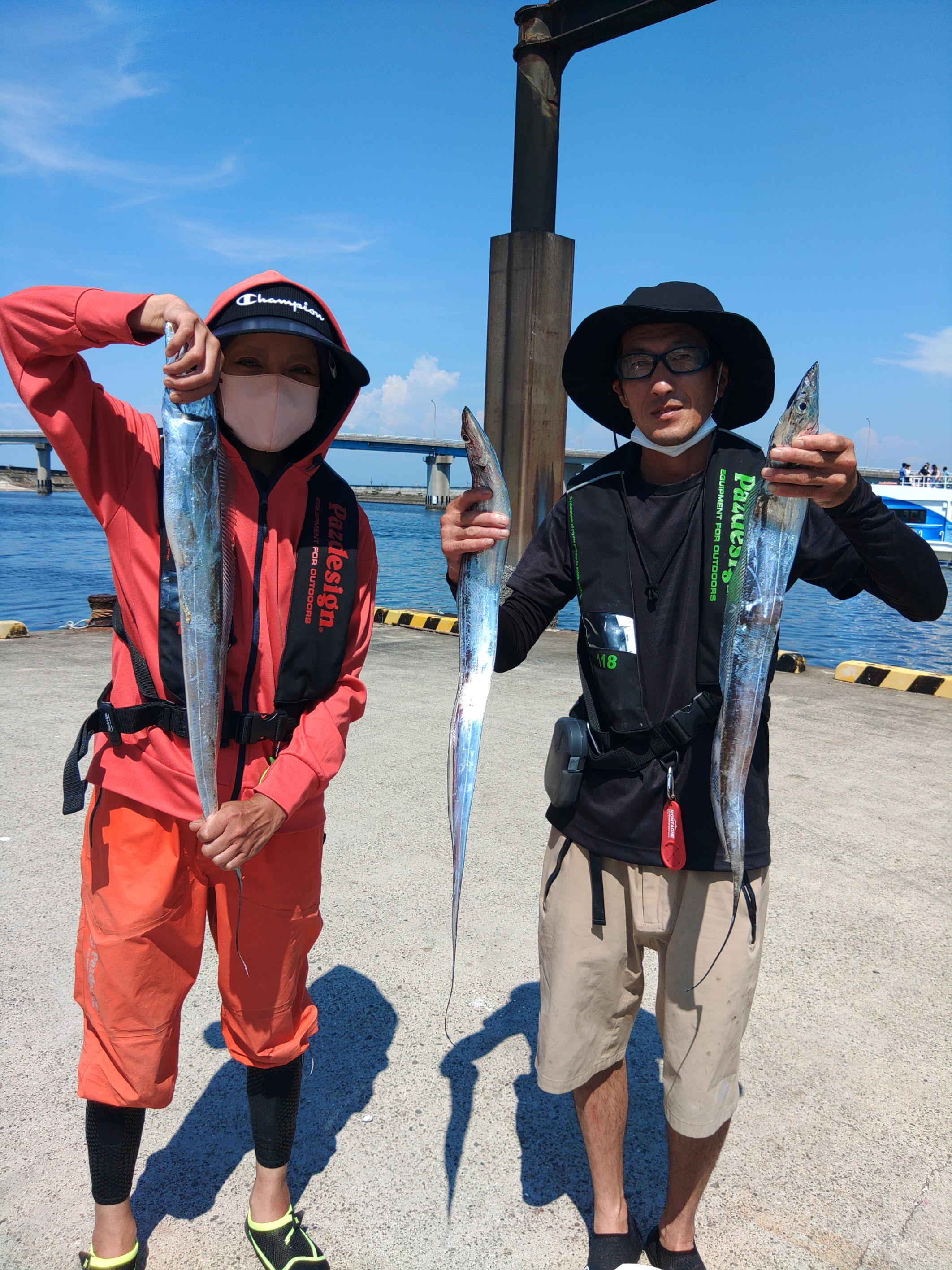 今日は天候不良でタイミング合わず久しぶりの出船でした。 いつも有り難うございますの方ばかり 皆さん久しぶりの出船を楽しみにされてた方ばかり 朝からいい天気ですが暑い 久しぶりの沖も暑いけど皆さん最後迄頑張って釣っていただきました。 タチウオのポイントは朝から沢山の船 潮も緩くあまり船も動かないけどチビタチウオは元気で朝からぼちぼち釣れダブルもあります 中盤からは潮も動き出しいいサイズが釣れて地合い到来でほとんどの方がデカタチゲット 沢山釣れた方もみえて中には大アジやイシモチも混ざりました。 今日は写真が多いので一気に スナップ写真が少ないですが港で持てるだけ持ってもらいました。 ![]() ![]() ![]() ![]() ![]() ![]() ![]() ![]() ![]() ![]() ![]() ![]() ![]() すみません2名程写真取れてなかった方みえました、ごめんなさい デカタチウオの水面でのバラシやラインカッター等残念だったのもありましたが皆さん久しぶりの釣りに満足していただいた様です。 ![]() 写真の撮り方が上手くなくあまり大きくみえませんがドラゴンですよ 暑いなかお疲れ様でした、ご乗船有り難うございます。また遊びに来て下さいね