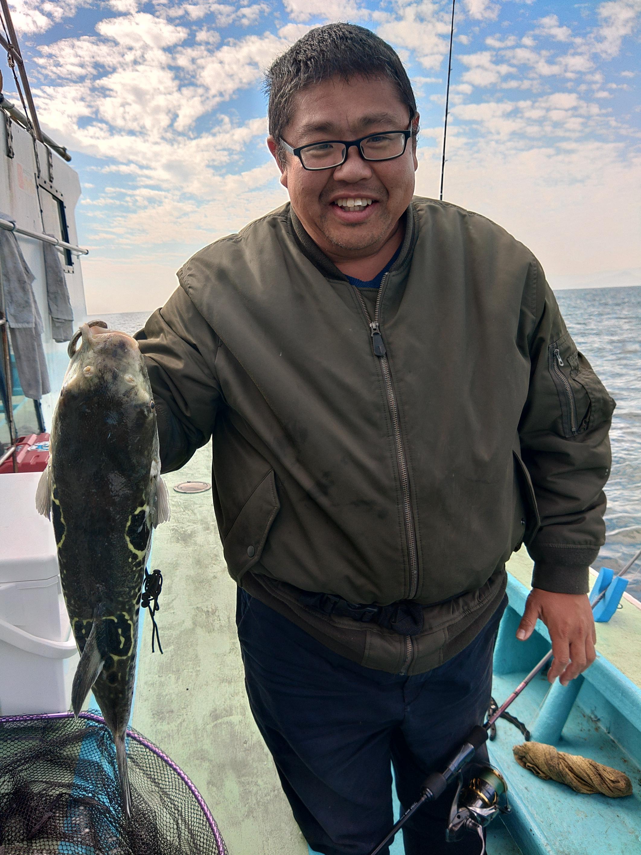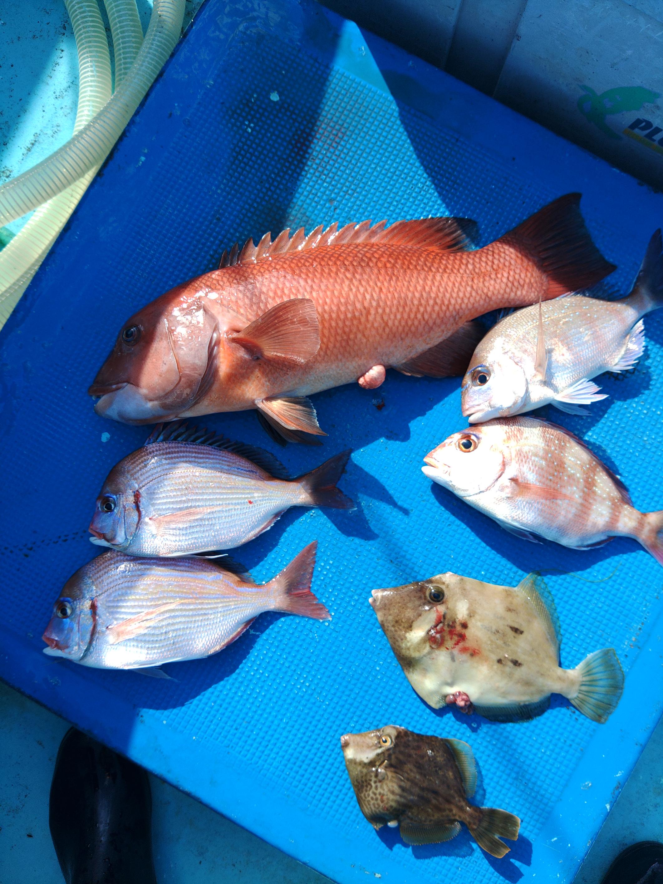今日はかなり久しぶりの出船でした。久しぶりすぎて海の状況もわからず何処へ行こうか迷いましたが前回調子よかったポイントへ 到着してすぐに塩焼きサイズの真鯛 カサゴやサバフグとポツポツアタリはあるけどサイズがイマイチ だんだん潮も緩くなりアタリも減り ポイント移動するもアタリはあるけど針がかりしない 餌ばかり取られてなかなか厳しい たまにカワハギやサバフグ 潮と風が真逆で船が動かない状況 また違うポイントへ ちょっといい引きはデカイアズキマスに虎フグ 今日は最後迄 厳しい感じでダメでした、すみません 黒柳君 一つテンヤ初めてで苦戦 ![]() 鈴木さん なかなかアタリがとれず ![]() 慎くん 1キロ越えの虎フグ ![]() ガンゾウ ![]() いいサイズのカワハギ ![]() 山田君 塩焼きサイズの真鯛 ![]() いいサイズのカンダイ ![]() ![]() 山田君のキープしただけ ![]() 池ちゃん 真鯛 ![]() 息子は初めてのデカイアズキマス ![]() ![]() 釣果にだいぶ差が出てしまい残念 すみませんでした。もう少し潮が動かないと厳しい感じでした。 お疲れ様でした、ご乗船有り難うございました。また遊びに来て下さいね