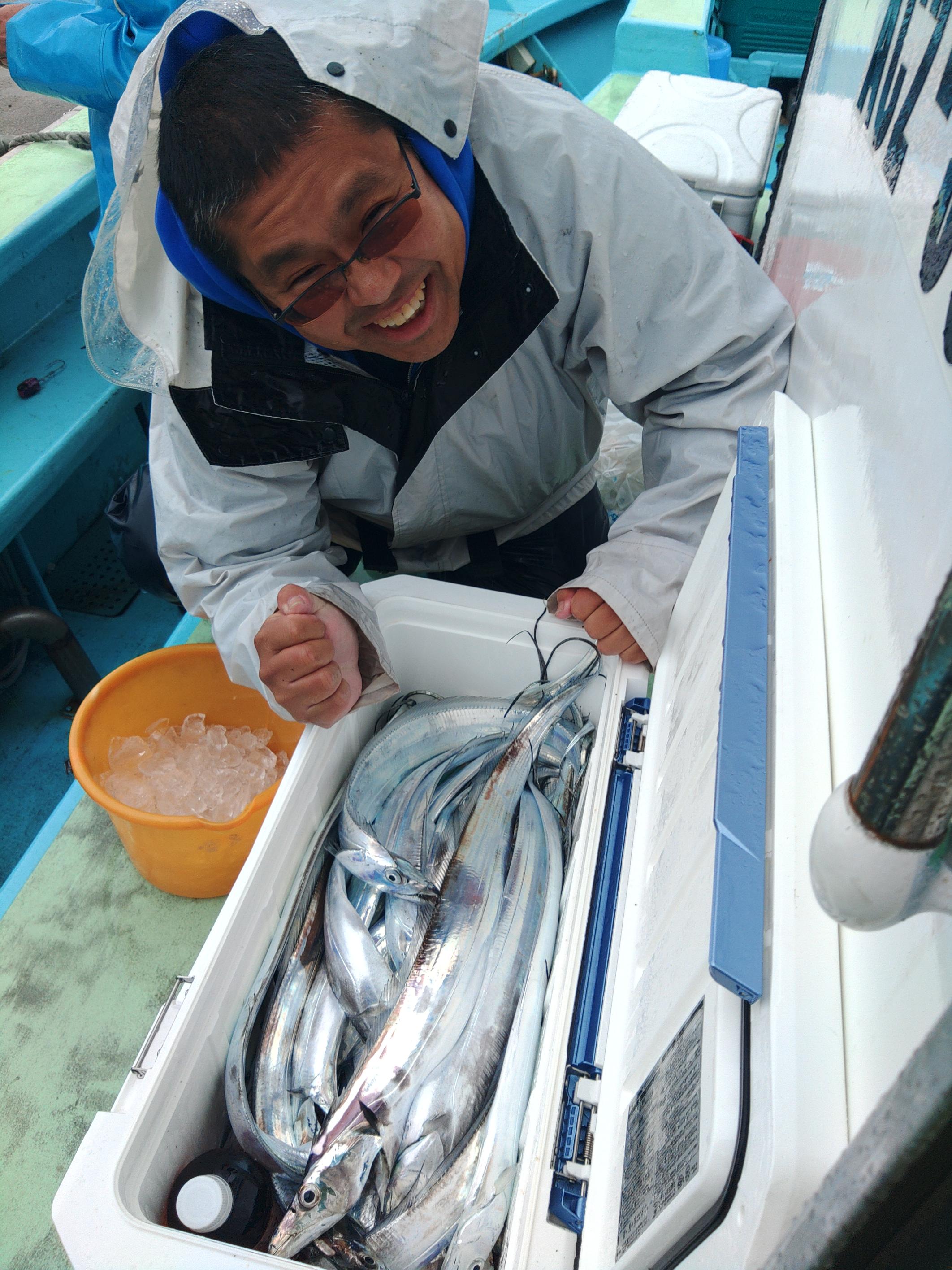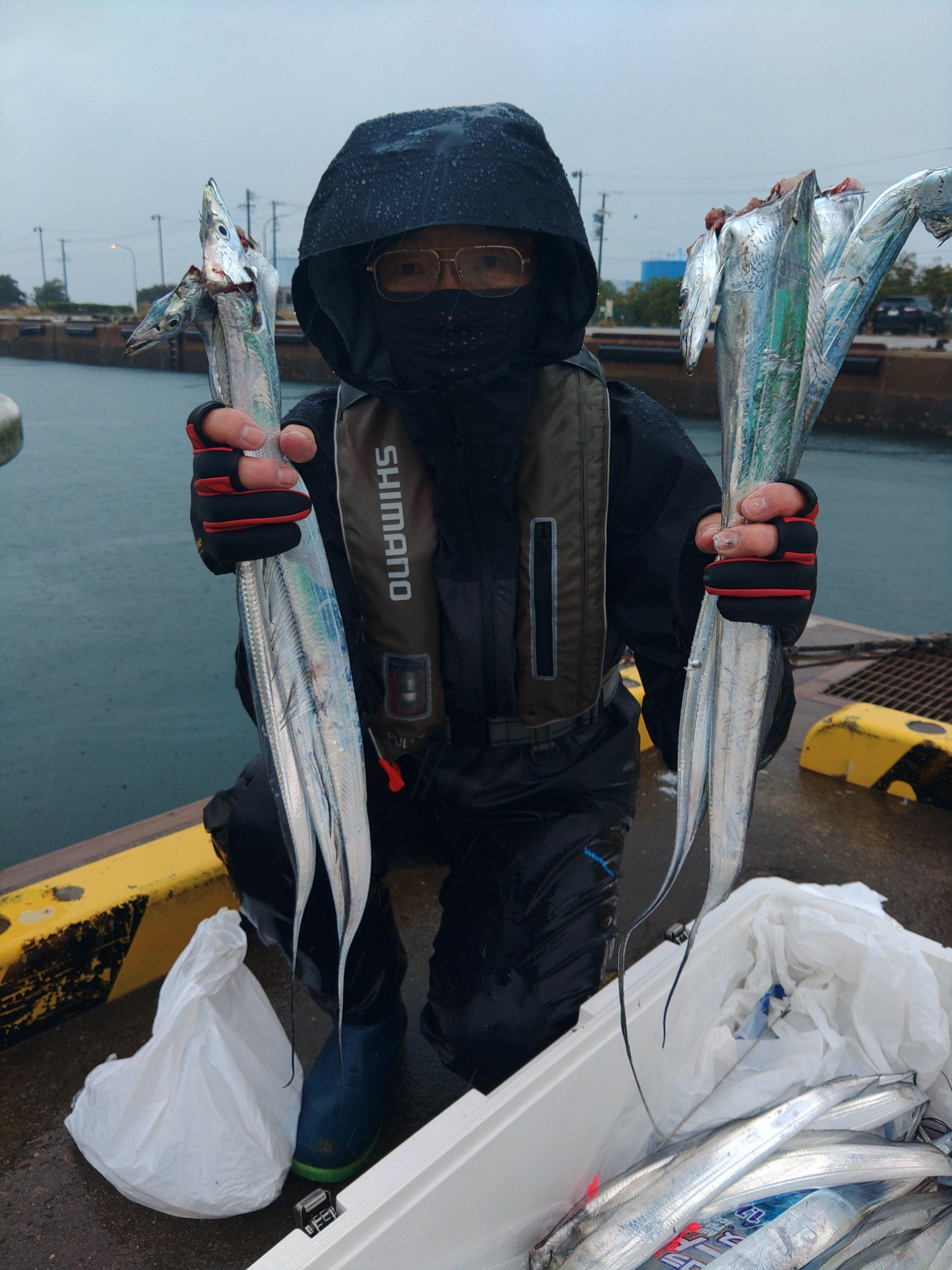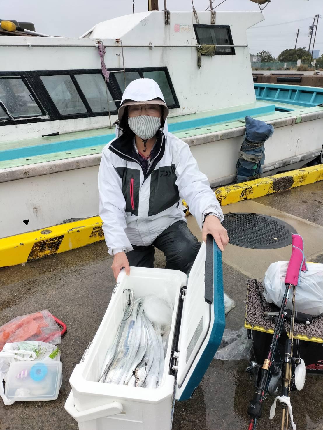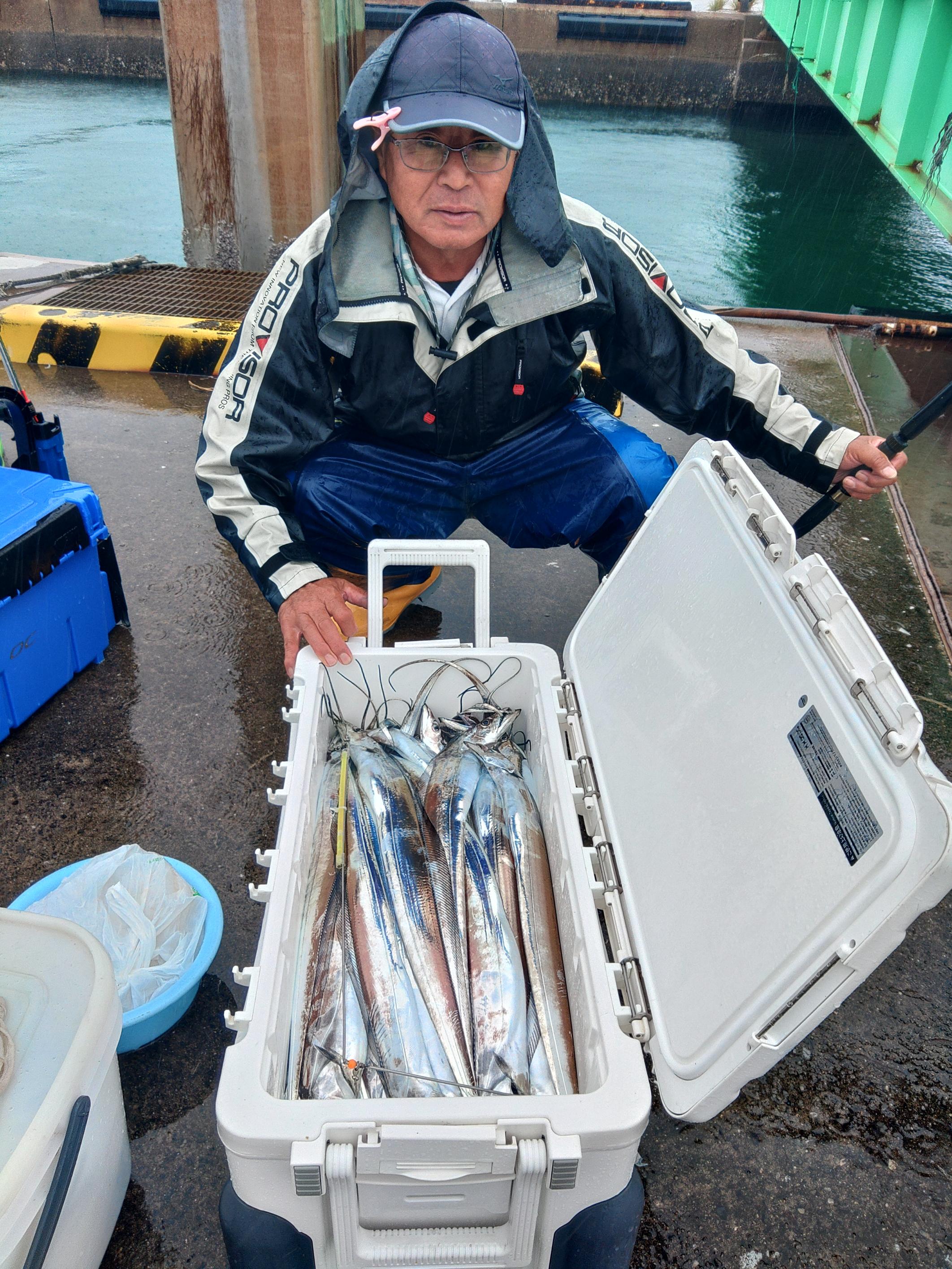 今日はタチウオ釣り出船しました。雨予報にもかかわらず沢山の方に集まっていただきありがとうございました。 予報通り朝から雨 時々ジャジャ降り でしたが皆さん最後迄頑張って釣ってもらえました。 今日もまだいい反応あり良く釣れました 天秤仕掛けの方はダブル連発 テンヤ仕掛けの方も入れ喰い 大きいのは残念でしたが皆さん大漁 ![]() ![]() ![]() ![]() ![]() ![]() ![]() ![]() ![]() ![]() 雨でスナップ写真少ないです 港に帰ってからの写真でしたが撮り忘れてしまった方すみません。 皆さんしっかりと数を数えてないですがほとんどの方が¥0オーバー 息子でも60オーバー もっと沢山釣れてる方もみえました。 天気は良くなかったですが沢山釣れて楽しめましたね 雨のなかお疲れさまでした、ご乗船ありがとうございました。また遊びに来て下さいね 風邪ひかないようにして下さいね 12日水曜日 タチウオ釣りご予約ありますがまだ人数不足です。 都合のつく方よかったら遊びに来て下さいね 宜しくお願いします!
