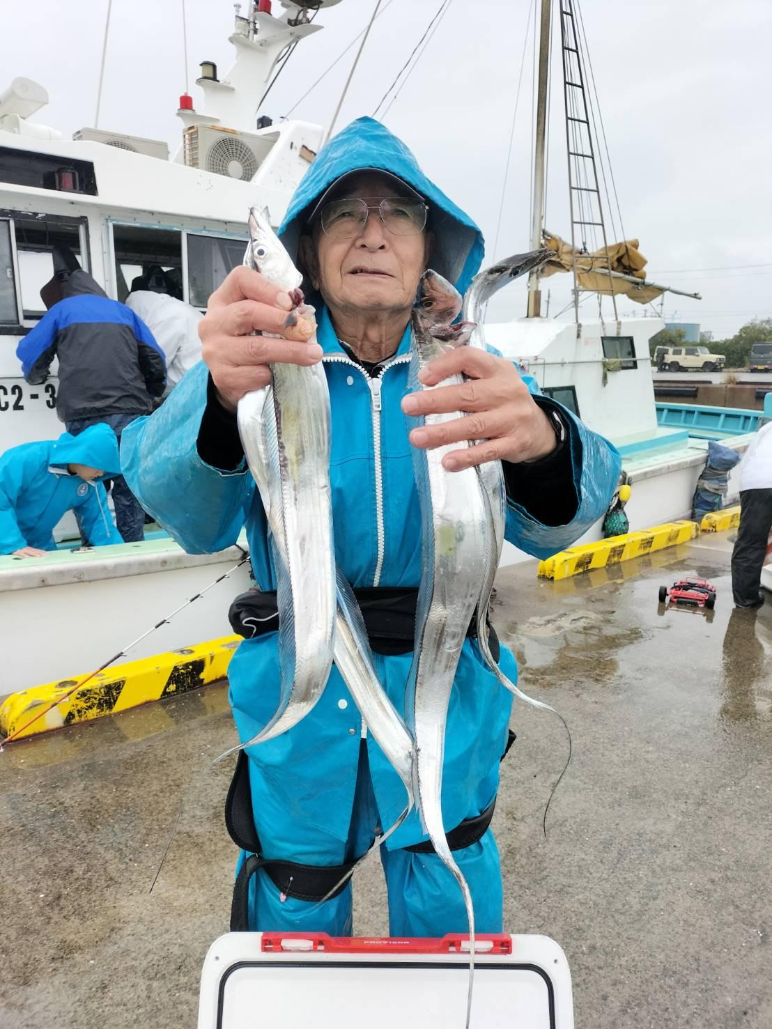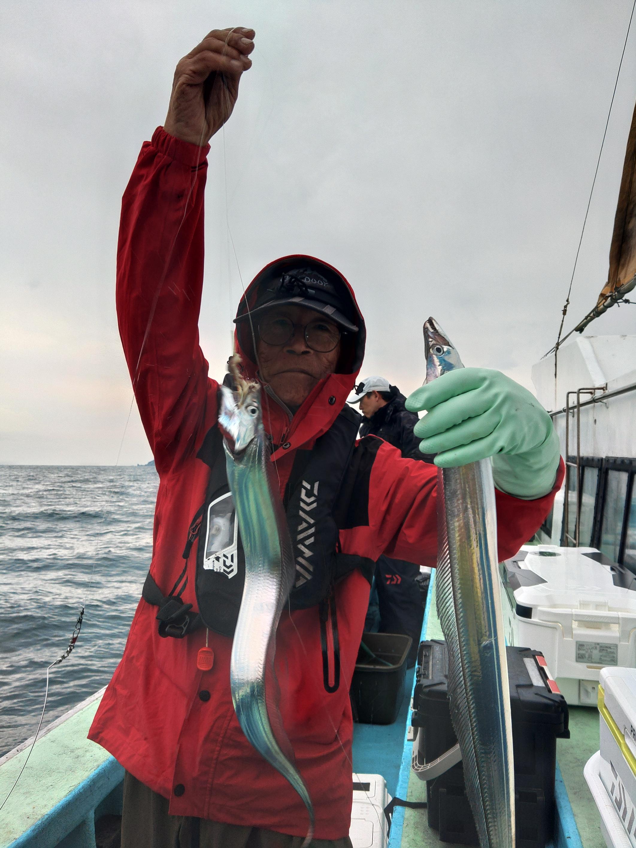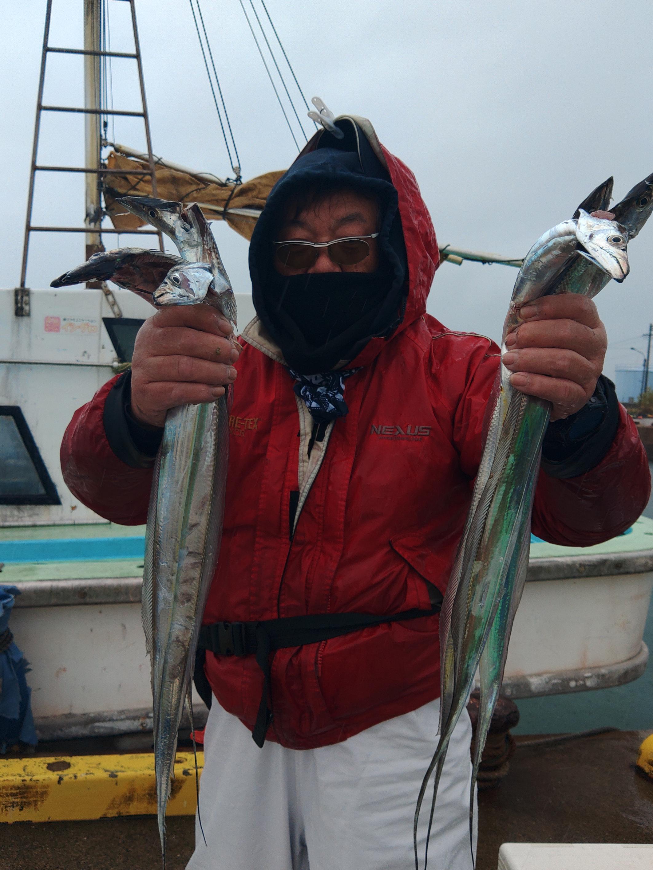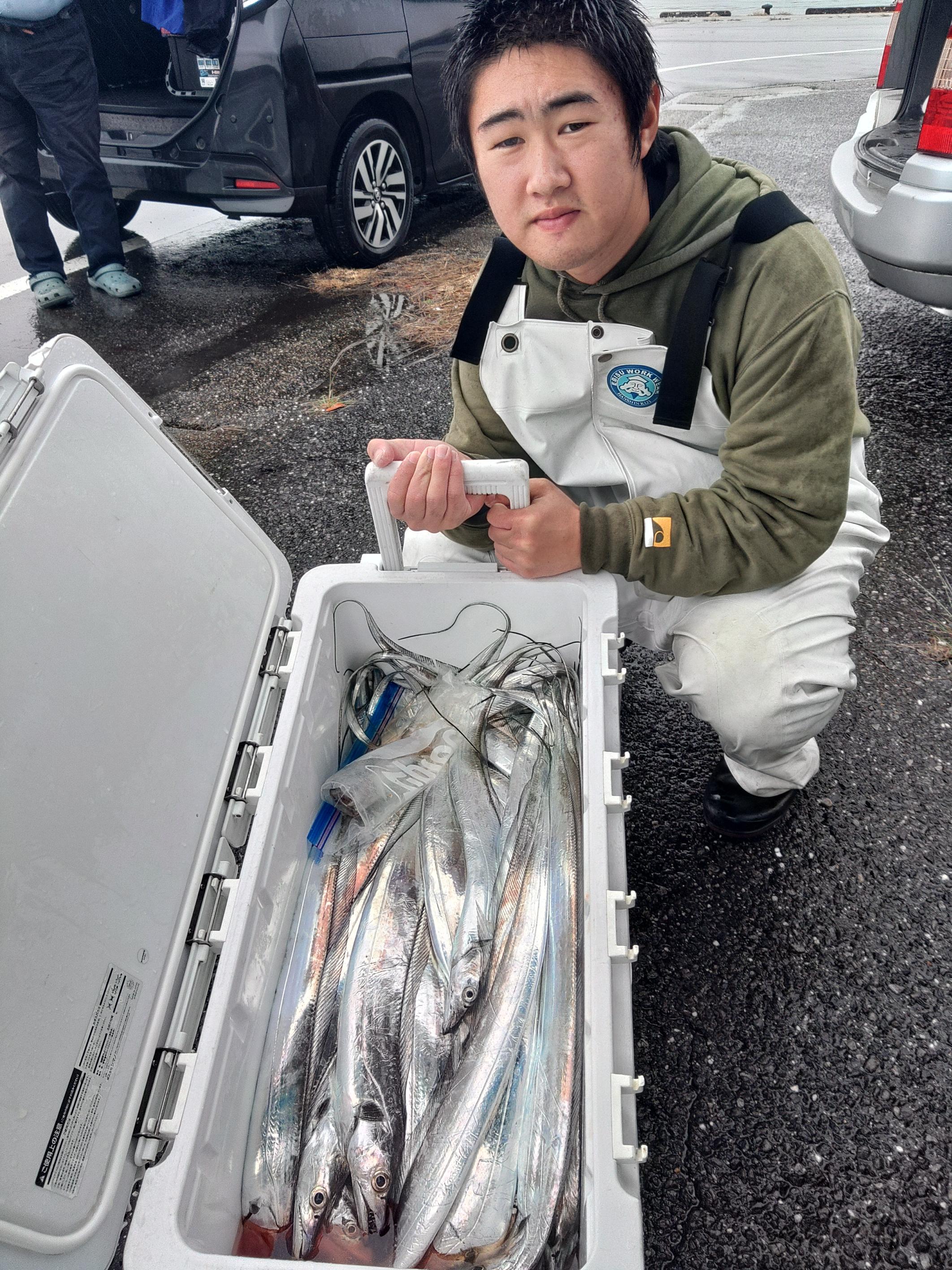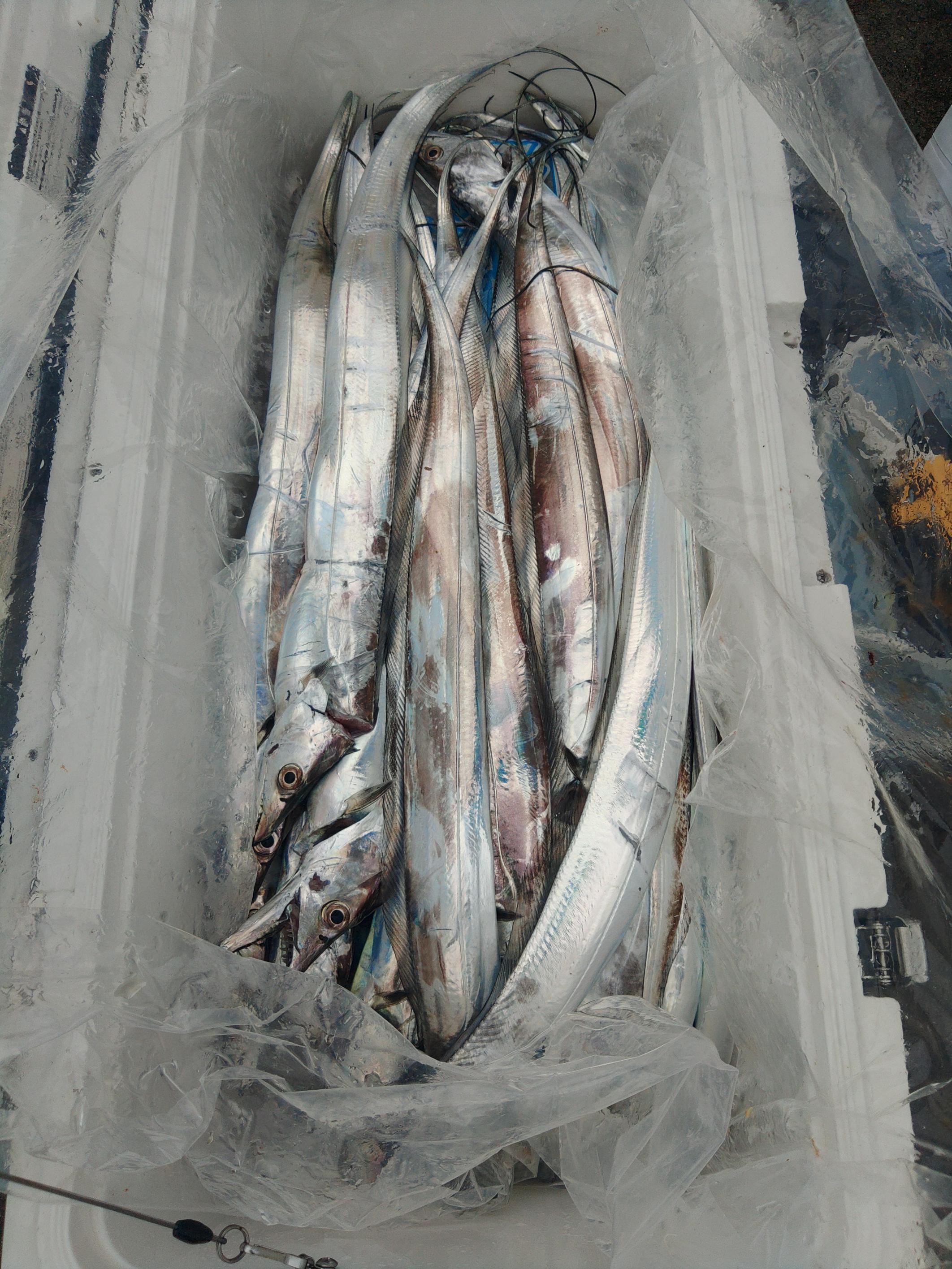今日はタチウオ釣り出船しました。雨予報にもかかわらず沢山の方に集まっていただきありがとうございました。 予報通り朝から雨 時々ジャジャ降り でしたが皆さん最後迄頑張って釣ってもらえました。 今日もまだいい反応あり良く釣れました 天秤仕掛けの方はダブル連発 テンヤ仕掛けの方も入れ喰い 大きいのは残念でしたが皆さん大漁 ![]() ![]() ![]() ![]() ![]() ![]() ![]() ![]() ![]() ![]() 雨でスナップ写真少ないです 港に帰ってからの写真でしたが撮り忘れてしまった方すみません。 皆さんしっかりと数を数えてないですがほとんどの方が¥0オーバー 息子でも60オーバー もっと沢山釣れてる方もみえました。 天気は良くなかったですが沢山釣れて楽しめましたね 雨のなかお疲れさまでした、ご乗船ありがとうございました。また遊びに来て下さいね 風邪ひかないようにして下さいね 12日水曜日 タチウオ釣りご予約ありますがまだ人数不足です。 都合のつく方よかったら遊びに来て下さいね 宜しくお願いします!